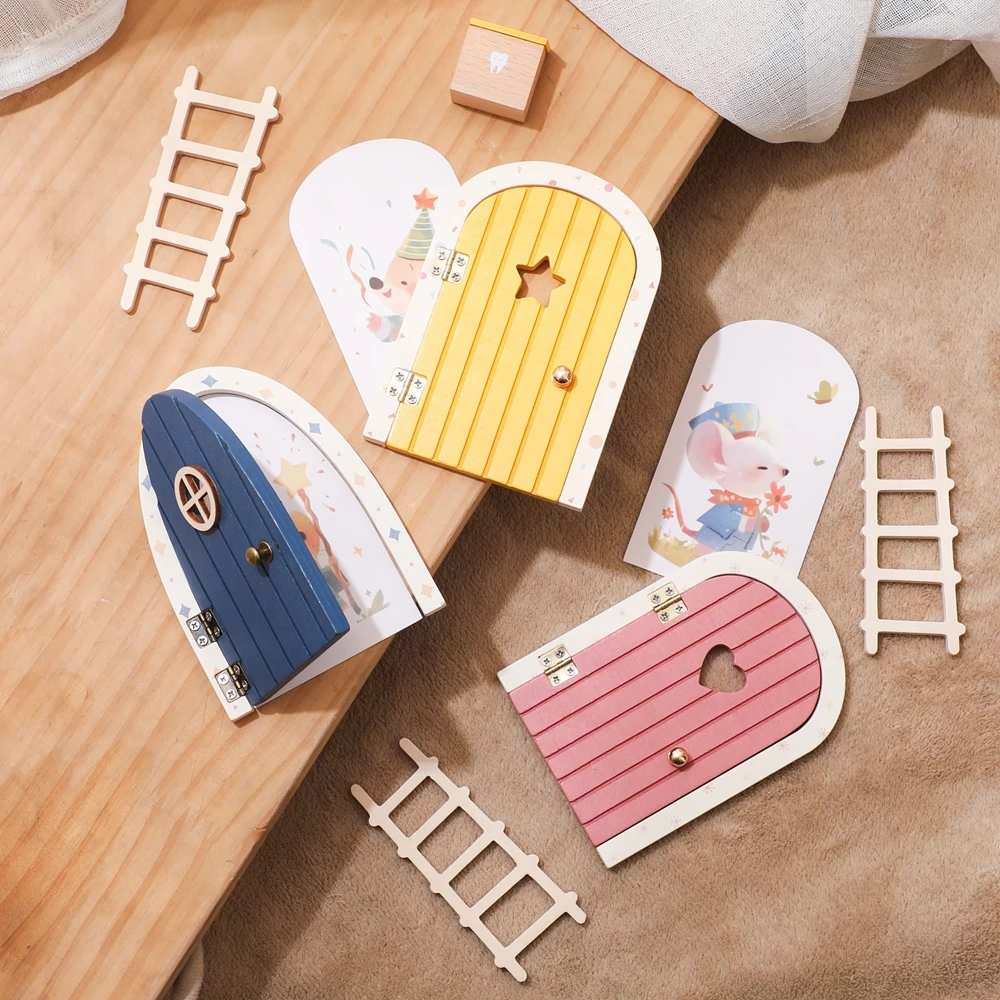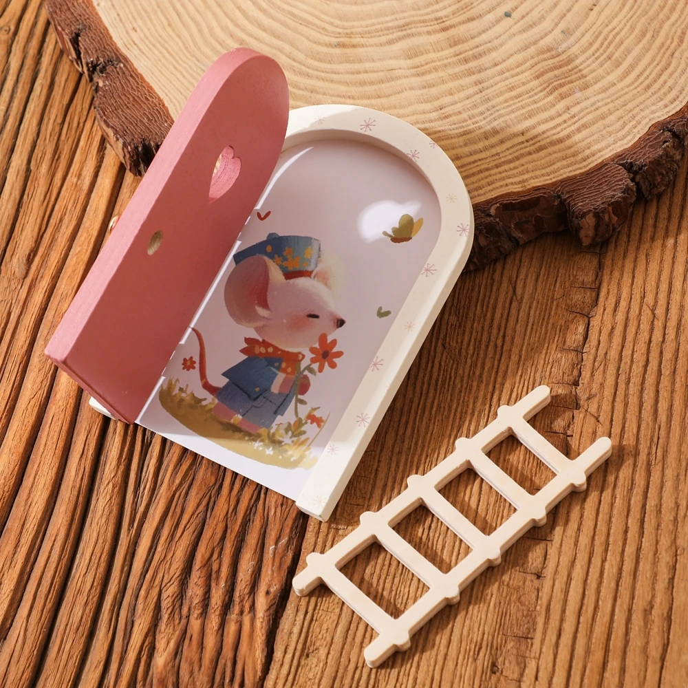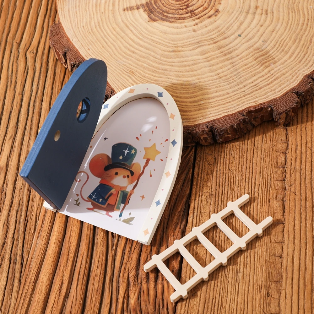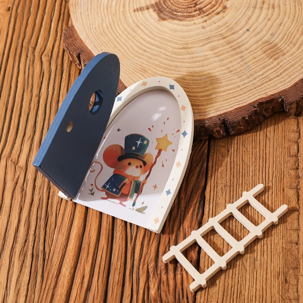 Juguetes para bebés, accesorios Montessori, puerta de elfo de dibujos animados, decoración de habitación, casa de muñecas, Mini decoraciones para el hogar, decoración de puerta de elfo de cuento de hadas de madera