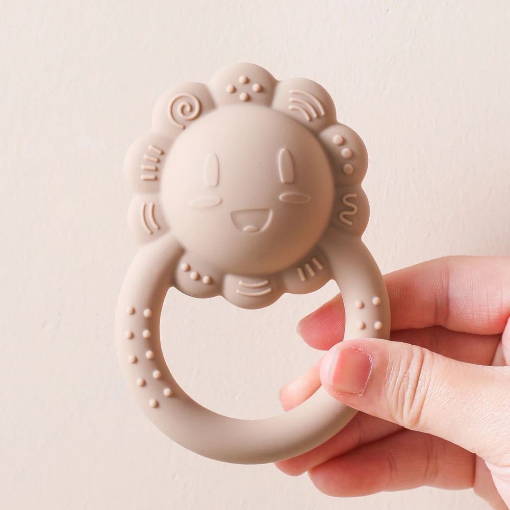 Juguetes para bebés, mordedor de silicona, sonajero de calidad alimentaria, juguetes para bebés de 0 a 12 meses, juguetes sensoriales, campana de mano de león de silicona, sonajero de dentición de silicona