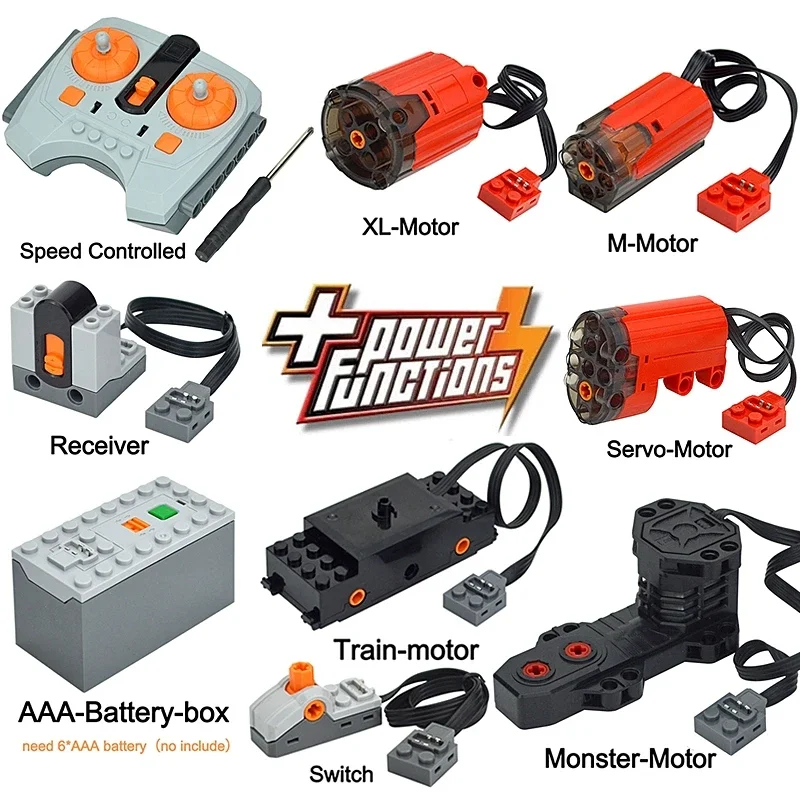 Número de modelo: M-Motor 8883, Caja de batería 8881, XL-Motor 8882, Servomotor 88004, L-Motor 88003, Luz 8870, Interruptor 8869, IR TX 8885, Control remoto de velocidad IR 8879, Motor de tren 88002, Caja de batería AAA 88000