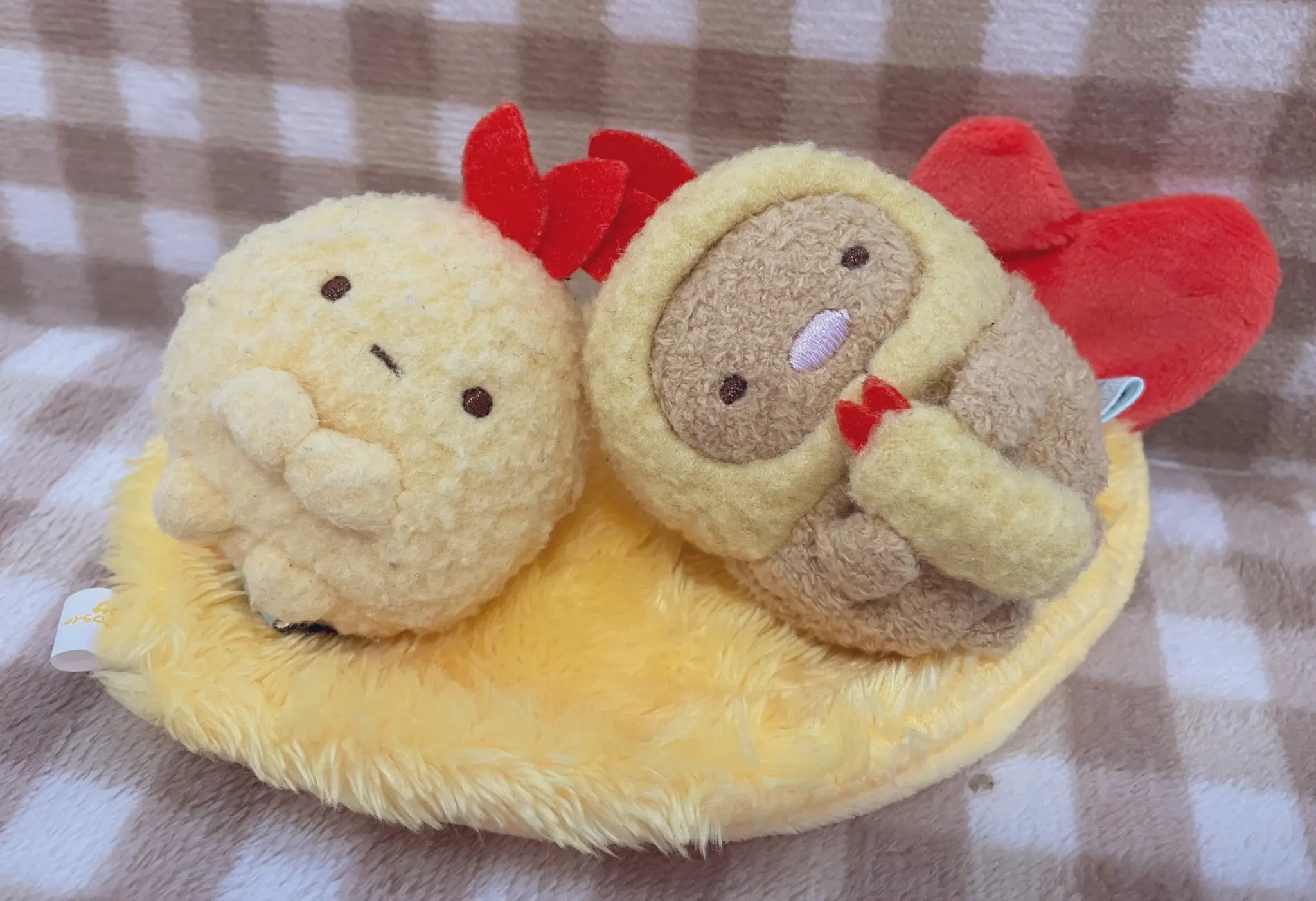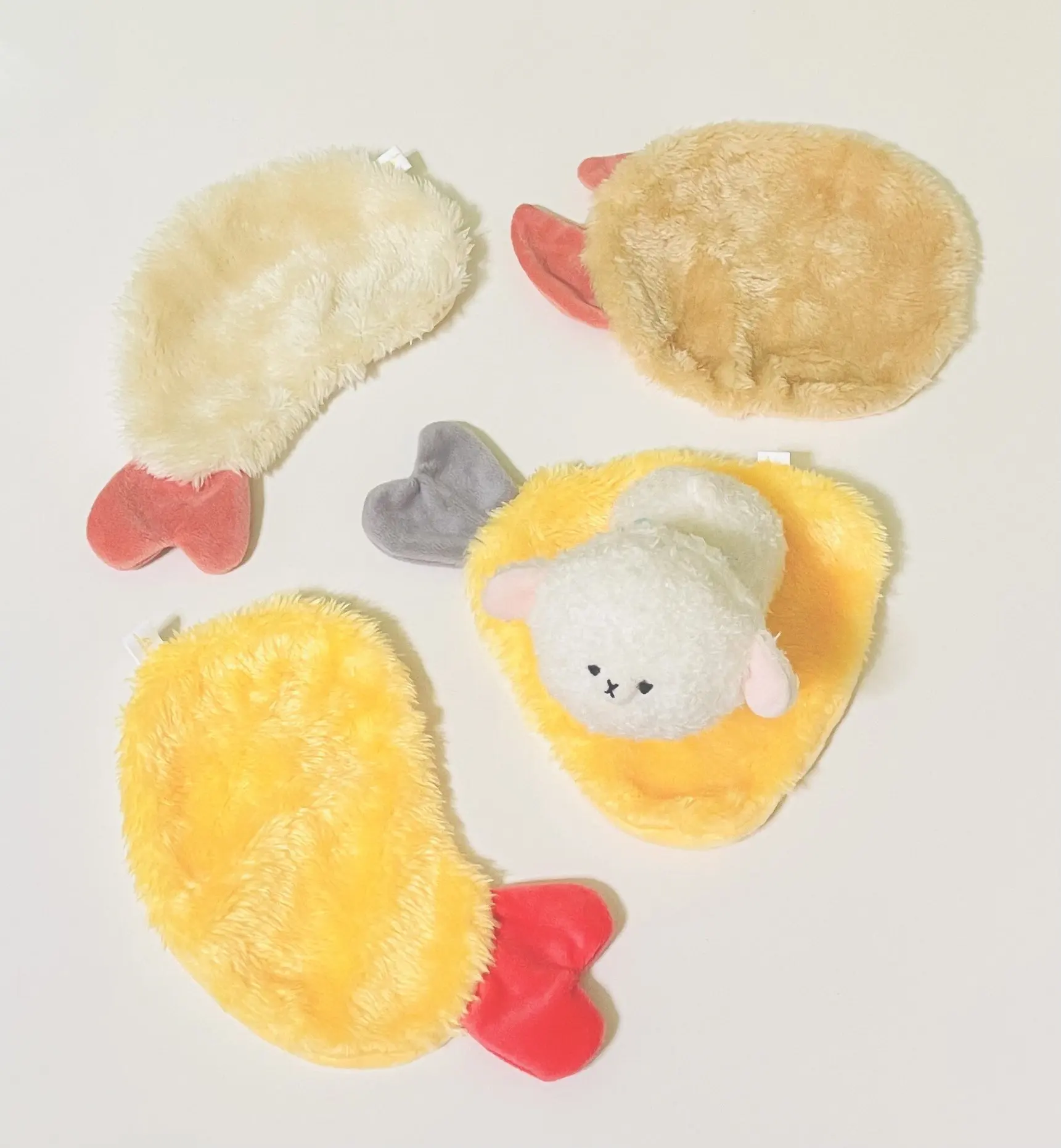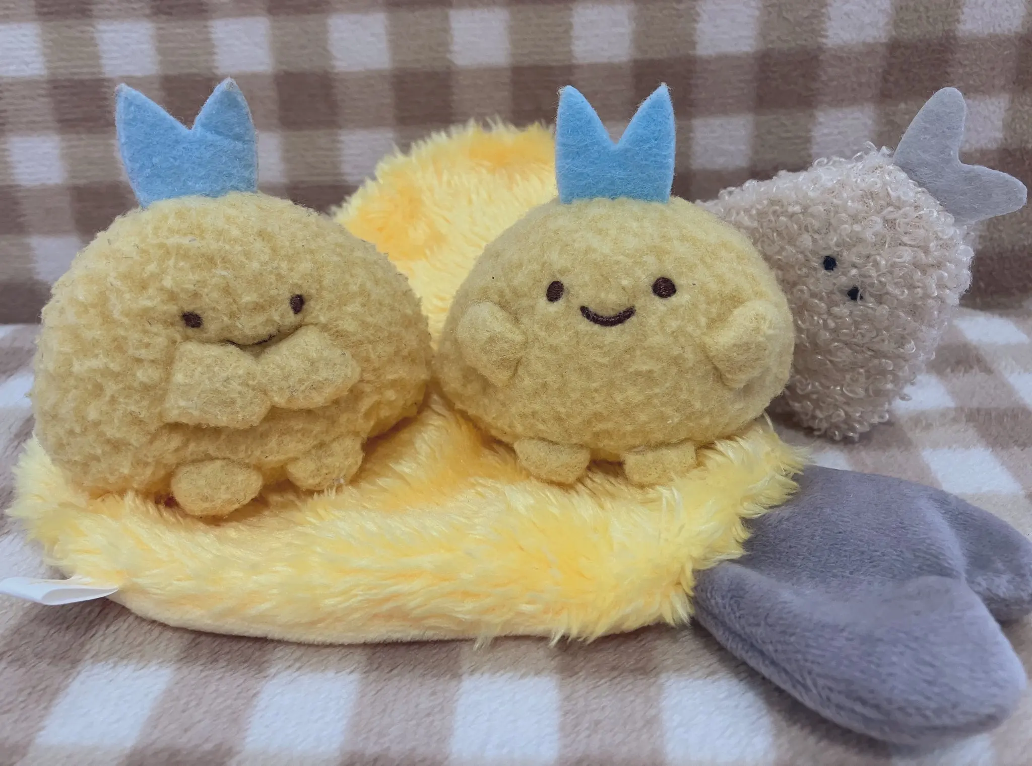 Juguetes de cápsula de color amarillo, lindo kawaii esponjoso, alfombra frita Fuwafuwa, croqueta de garra de cangrejo amarillo, figuras de camarones fritos, muñecas gashapon