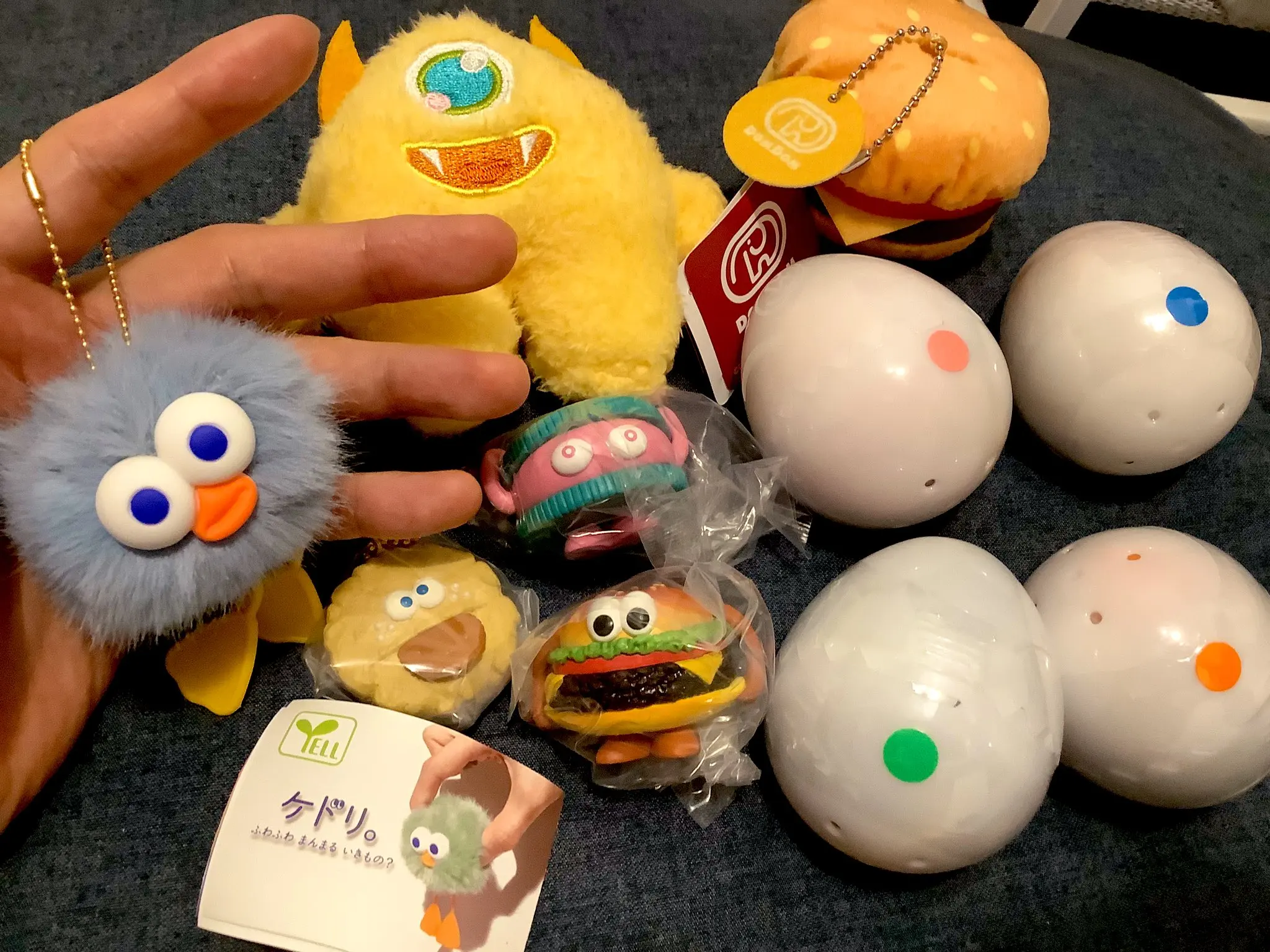 Comprar Juguetes de cápsula grita kawaii, figura esponjosa de Kedori, divertido pollito de peluche redondo, pies largos, ojos grandes y azules, colgante de cadena de bolas, cáscara de huevo gacha