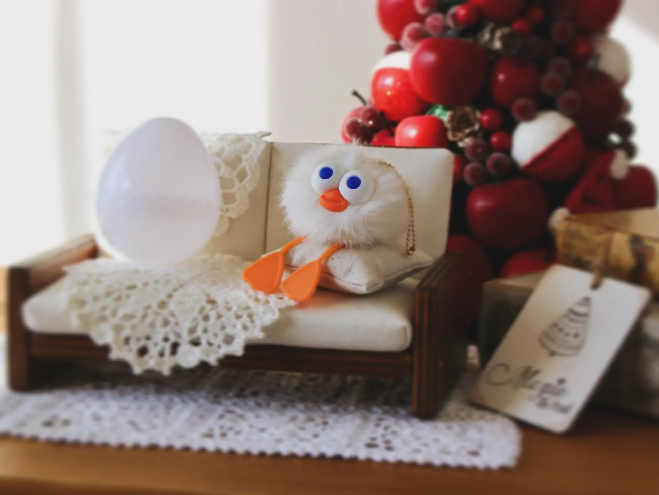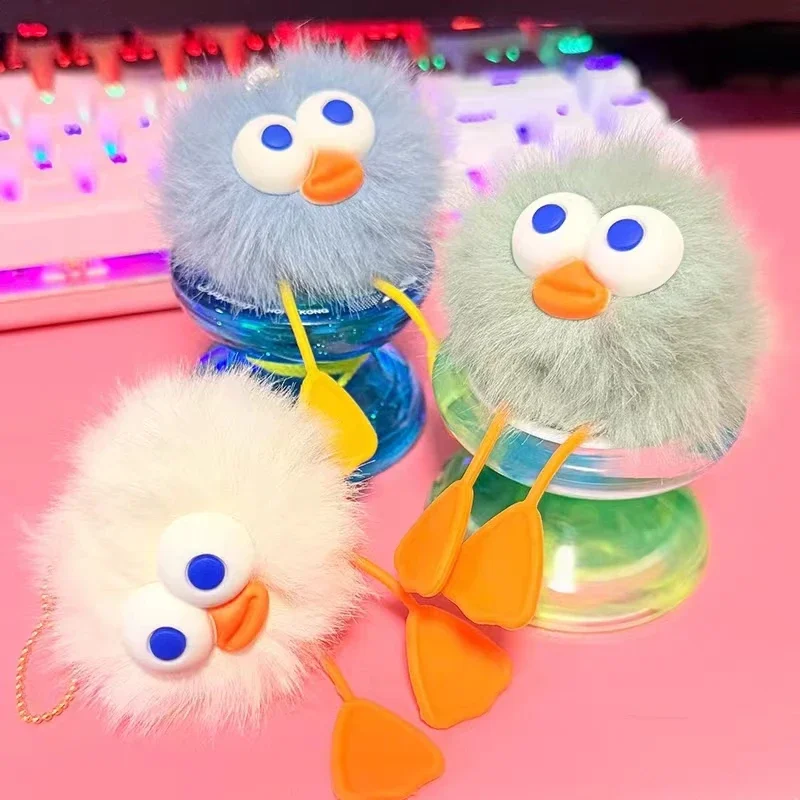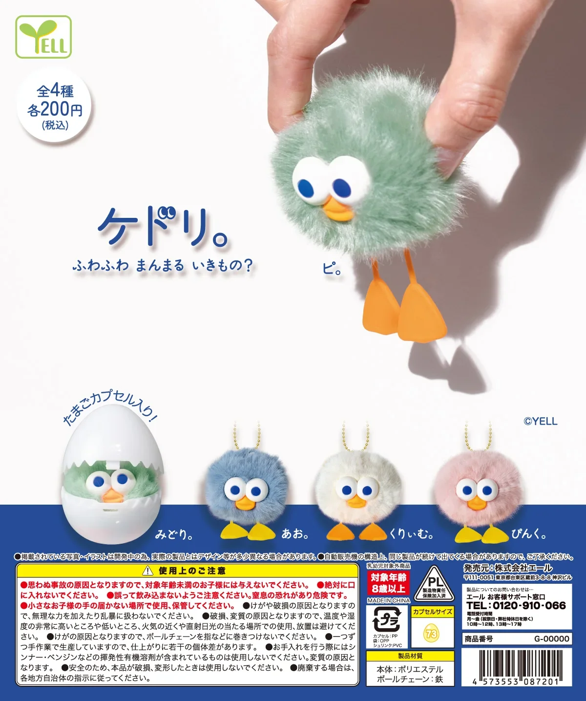 Comprar Juguetes de cápsula grita kawaii, figura esponjosa de Kedori, divertido pollito de peluche redondo, pies largos, ojos grandes y azules, colgante de cadena de bolas, cáscara de huevo gacha