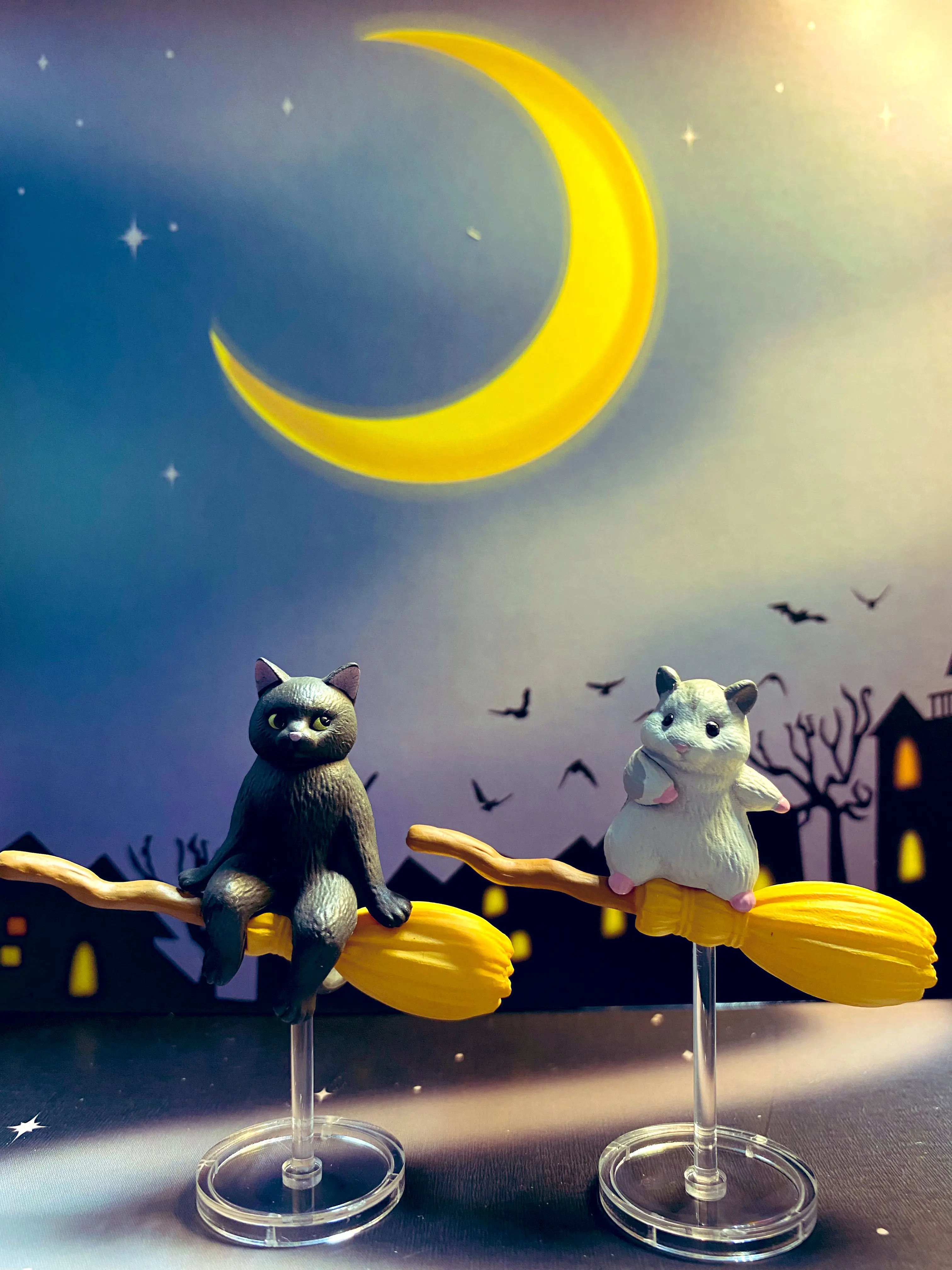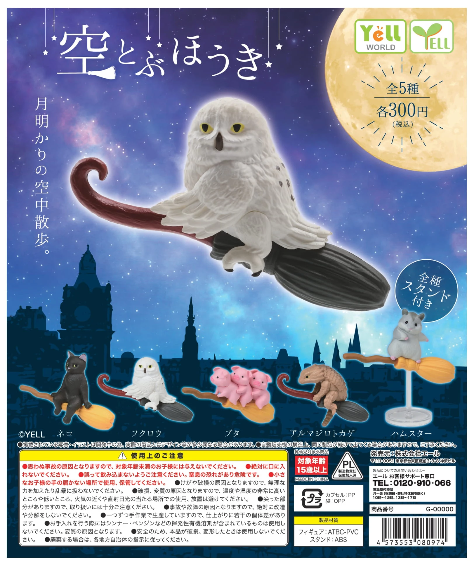 Note: Order 5 pieces , we'll send buyer a full set.flying broomA walk in the moonlight.Comes with all types of stands.■ cat■ Owl■ Pig■ Armadillo lizard■ HamsterReleased: Yell December 2022Specifications: Capsule toy body PVC・Capsule size: 65mm・JAN code: 4573553080974