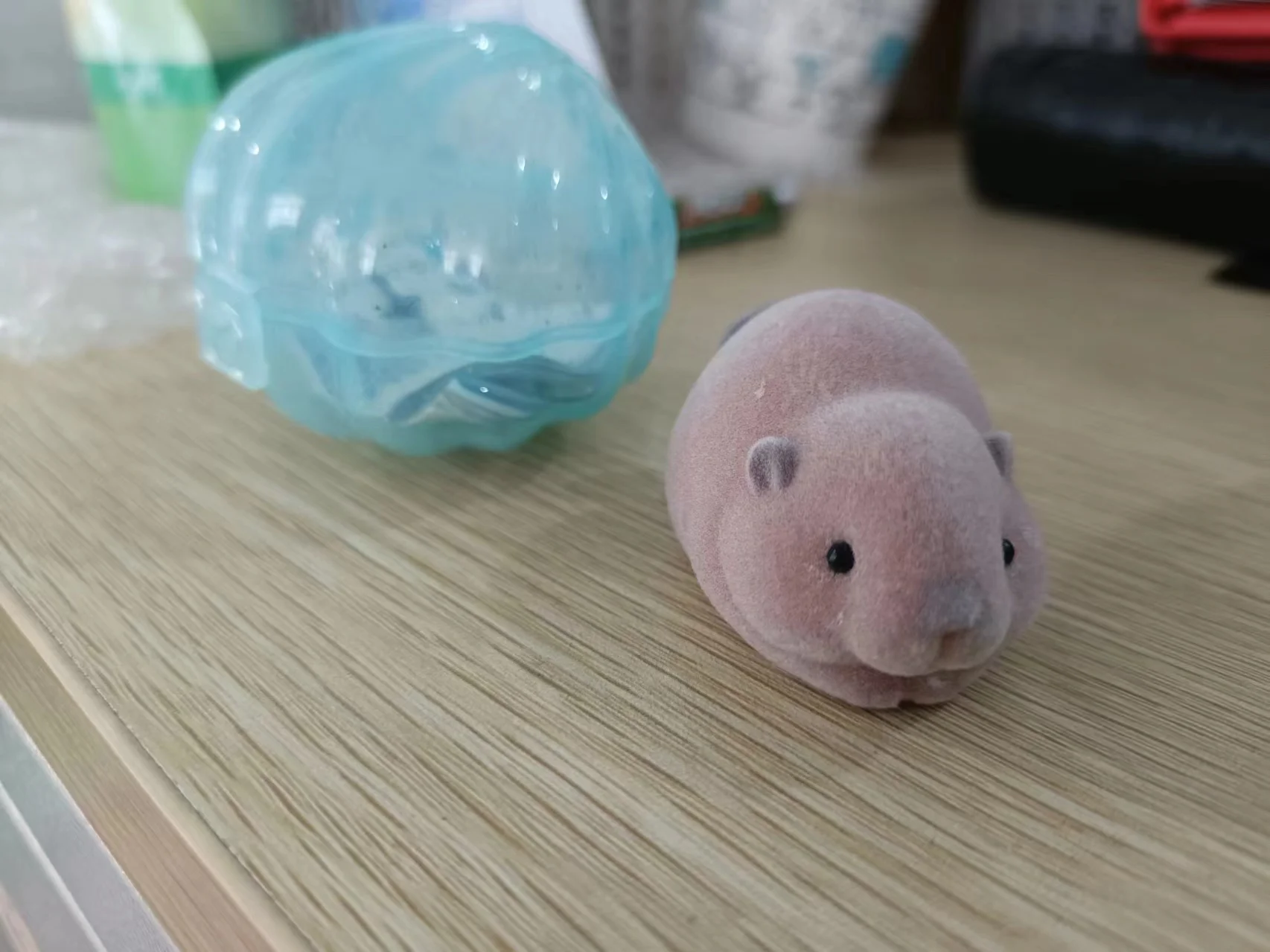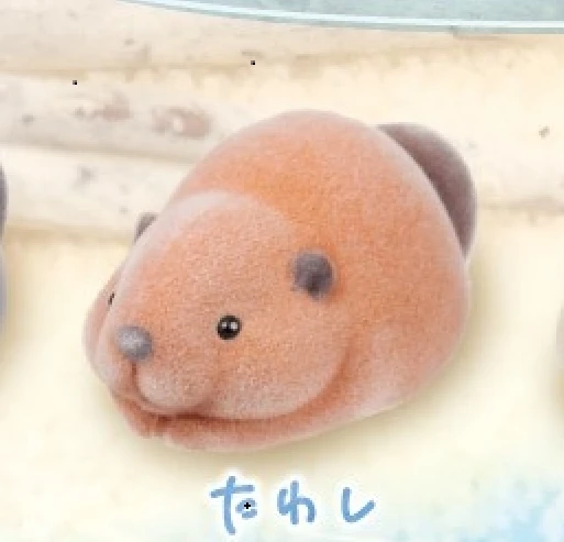 ¡Qué adorable! Viene en una pequeña cápsula de Gachapon con una figura de nutria marina flocada en su interior.