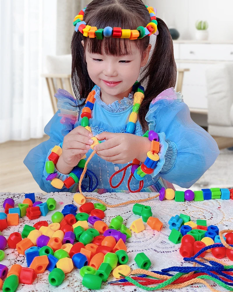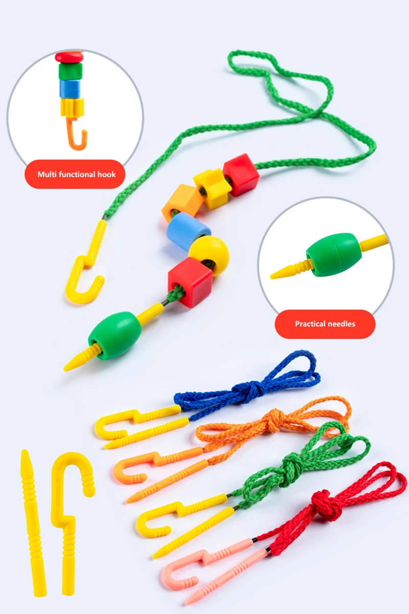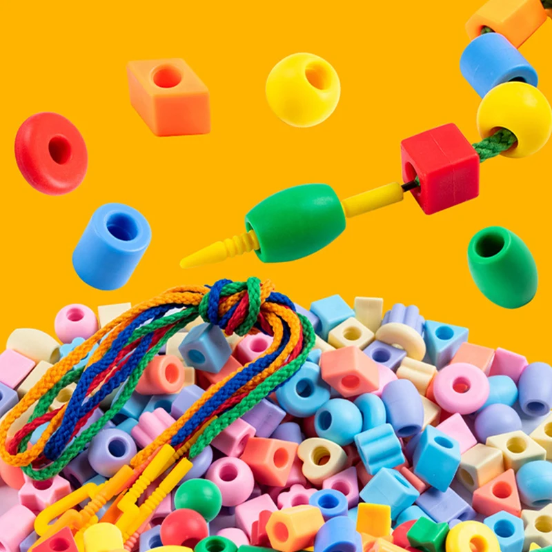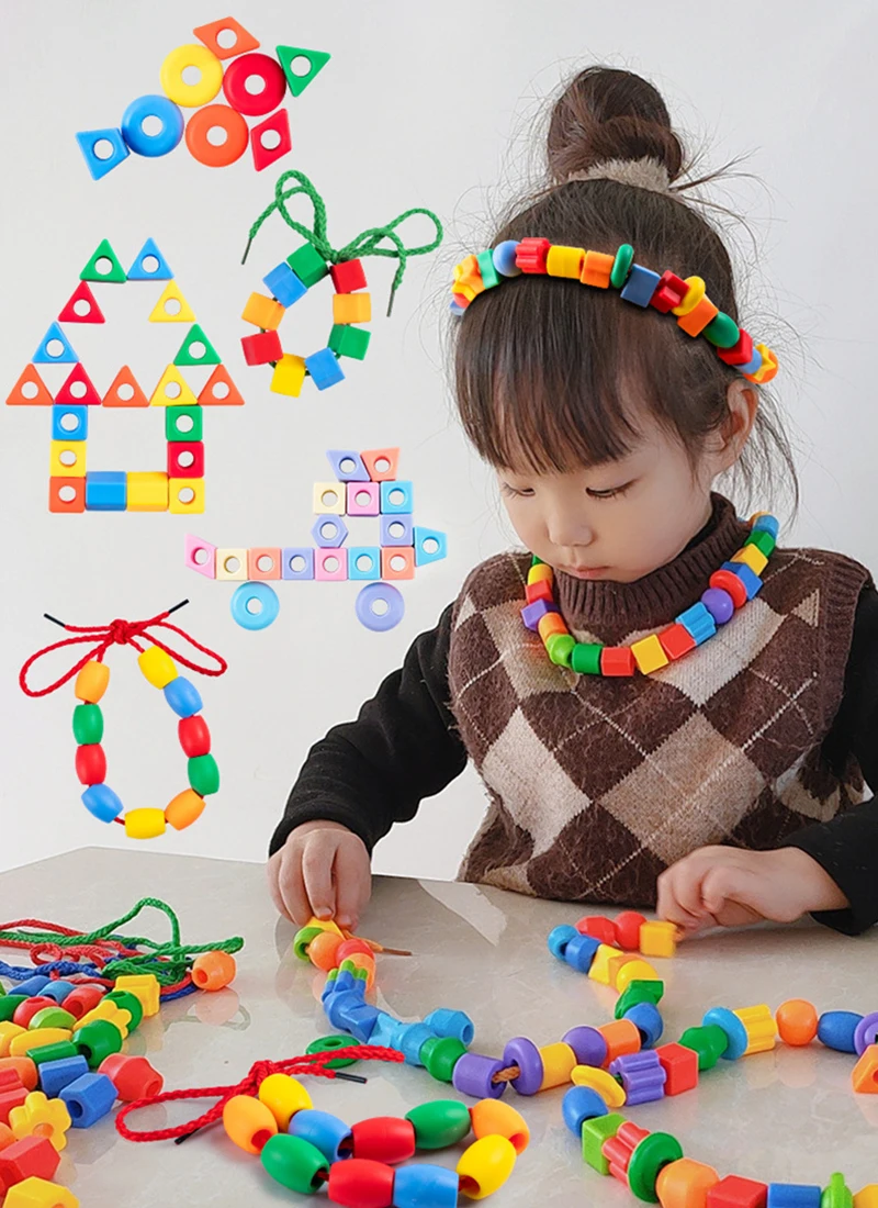 Comprar Juguetes de cuentas de plástico para niños, rompecabezas artesanal hecho a mano, juguete de educación temprana, juegos de enhebrado de cuerda, pulsera hecha a sí misma, collar, regalos