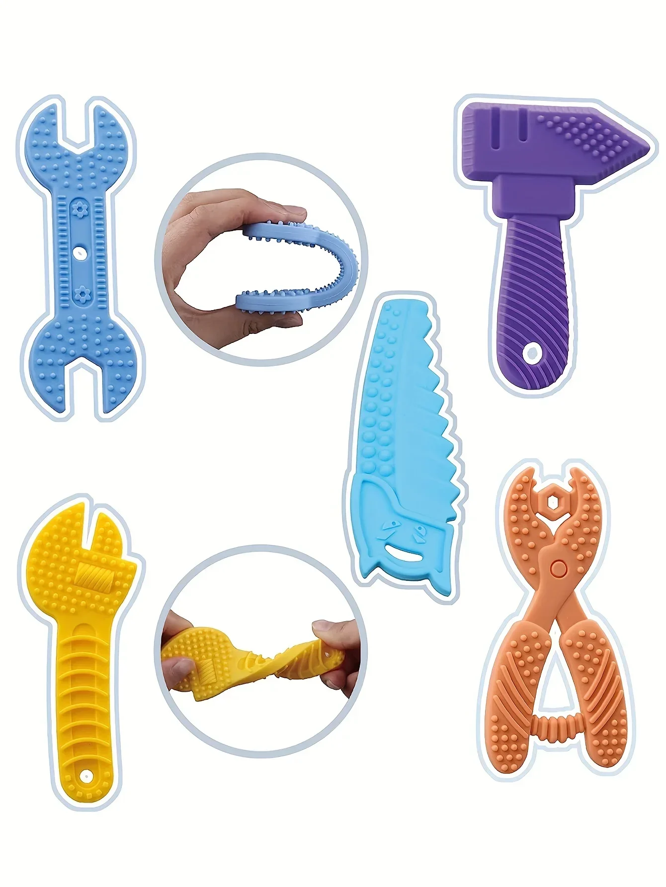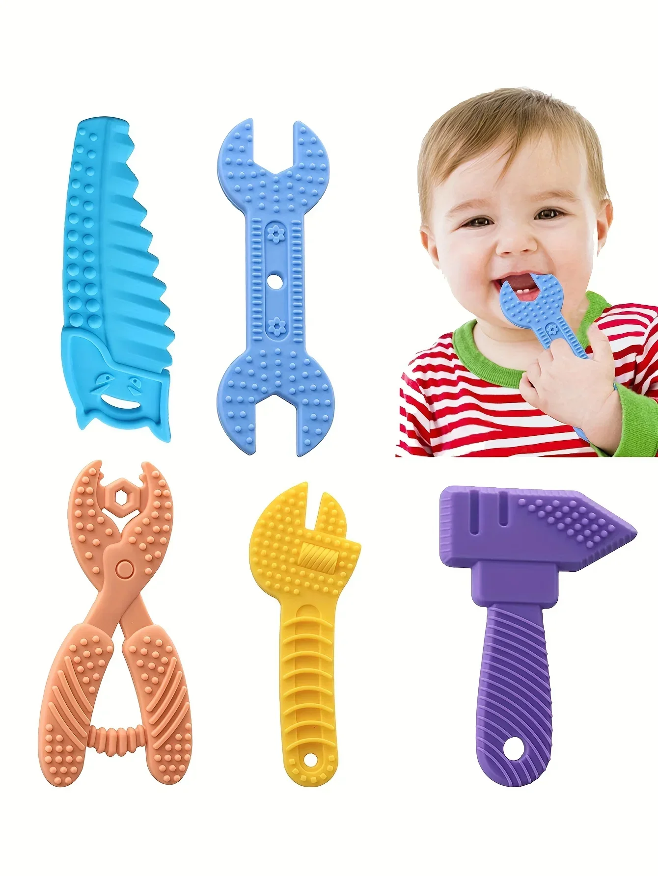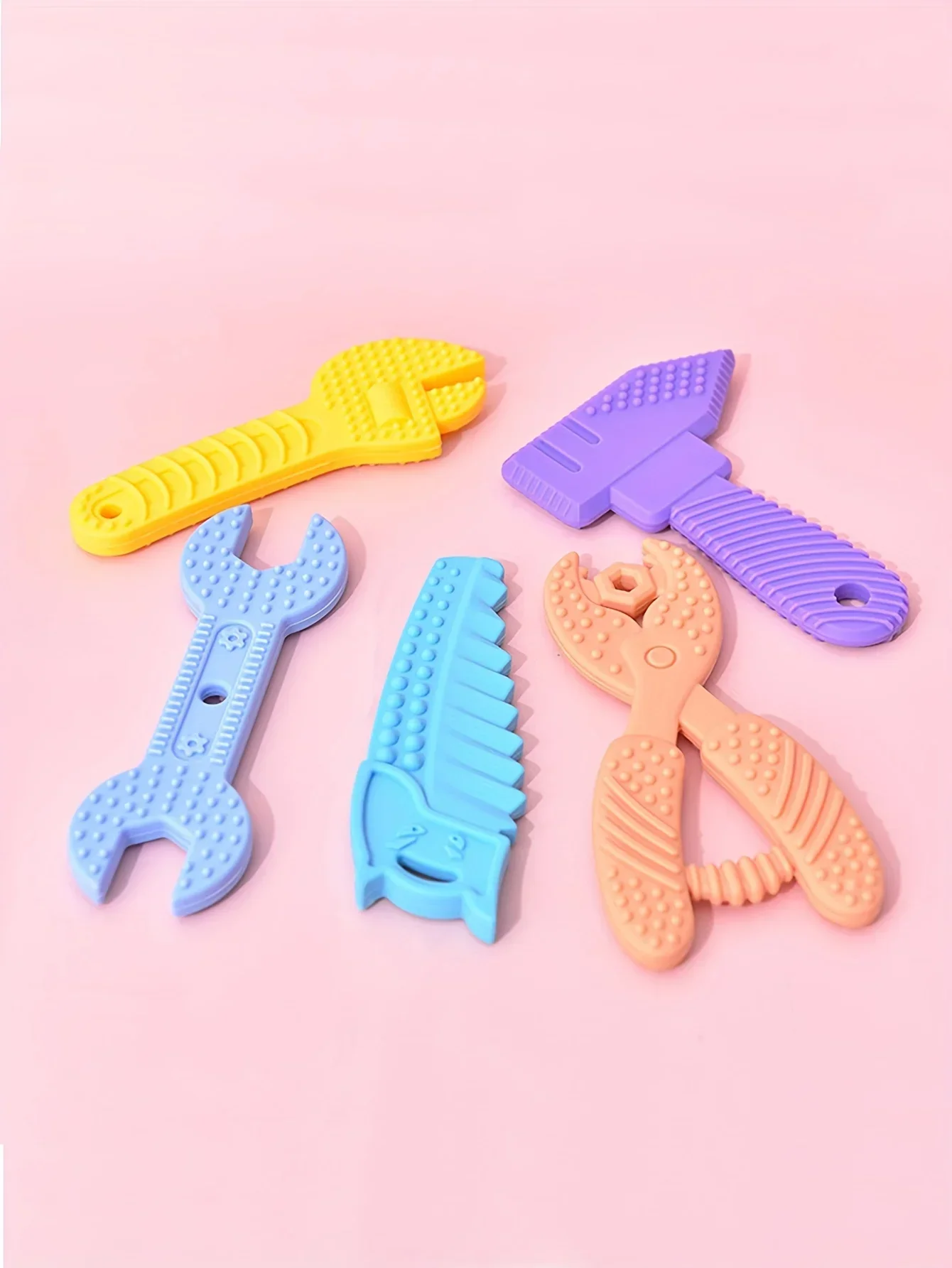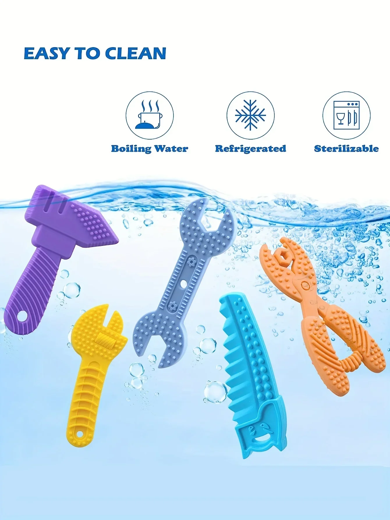 Juguetes para la dentición del bebé, congelador sin BPA de silicona de 0 a 12 meses, juguetes para masticar, martillo, llave inglesa, alicates con forma de caja de almacenamiento
