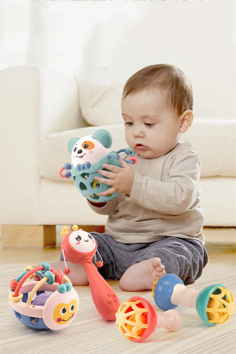 Juguetes de desarrollo para bebés de 0, 6 y 12 meses, accesorios para recién nacidos, mordedor de silicona, sonajero, juegos sensoriales para bebés, juguetes para bebés de 1 año
