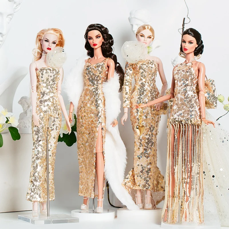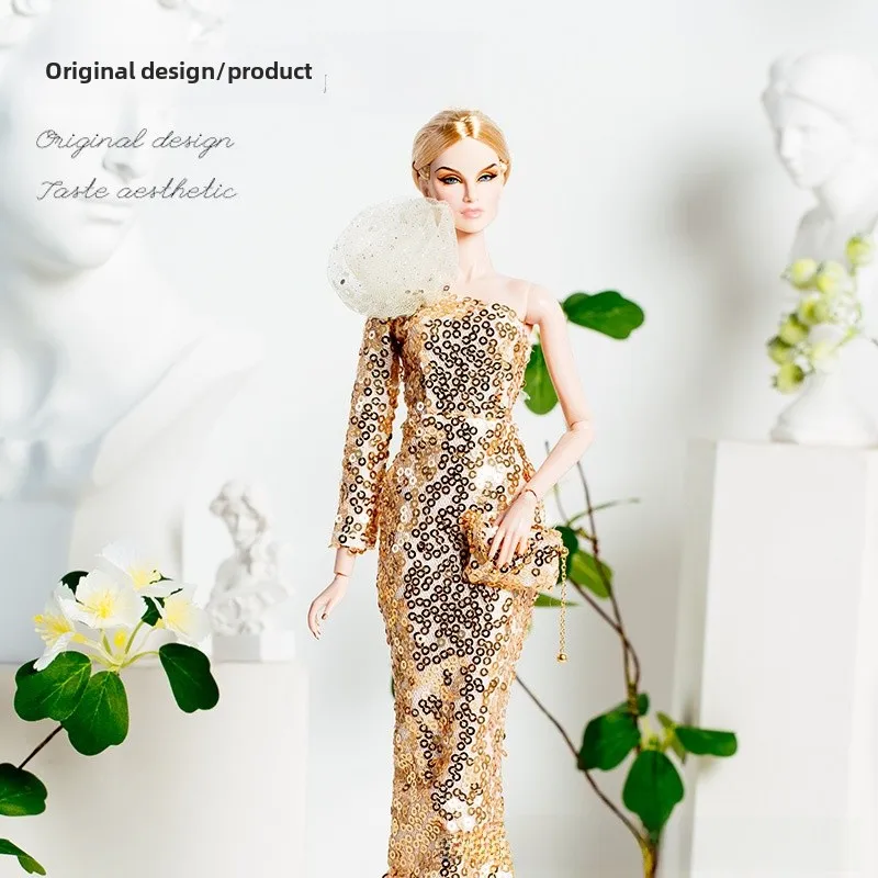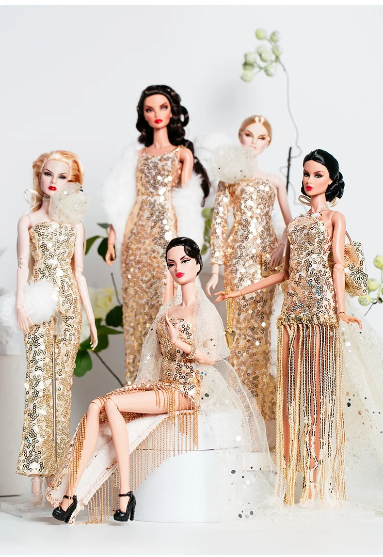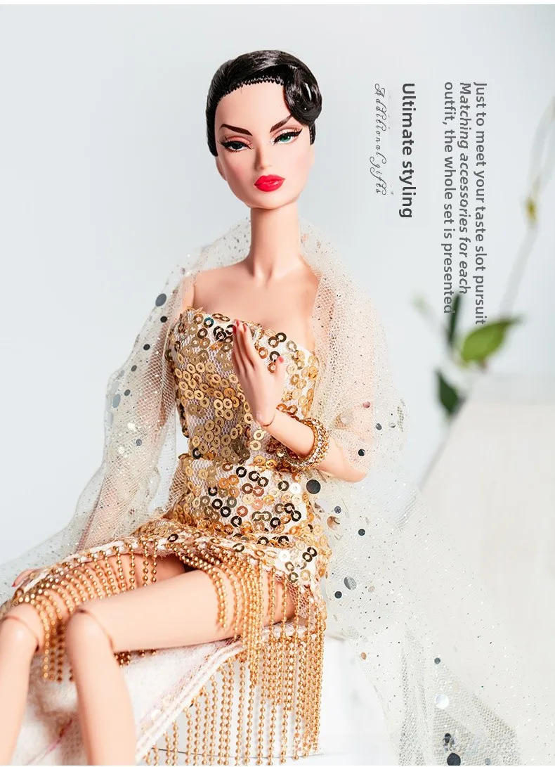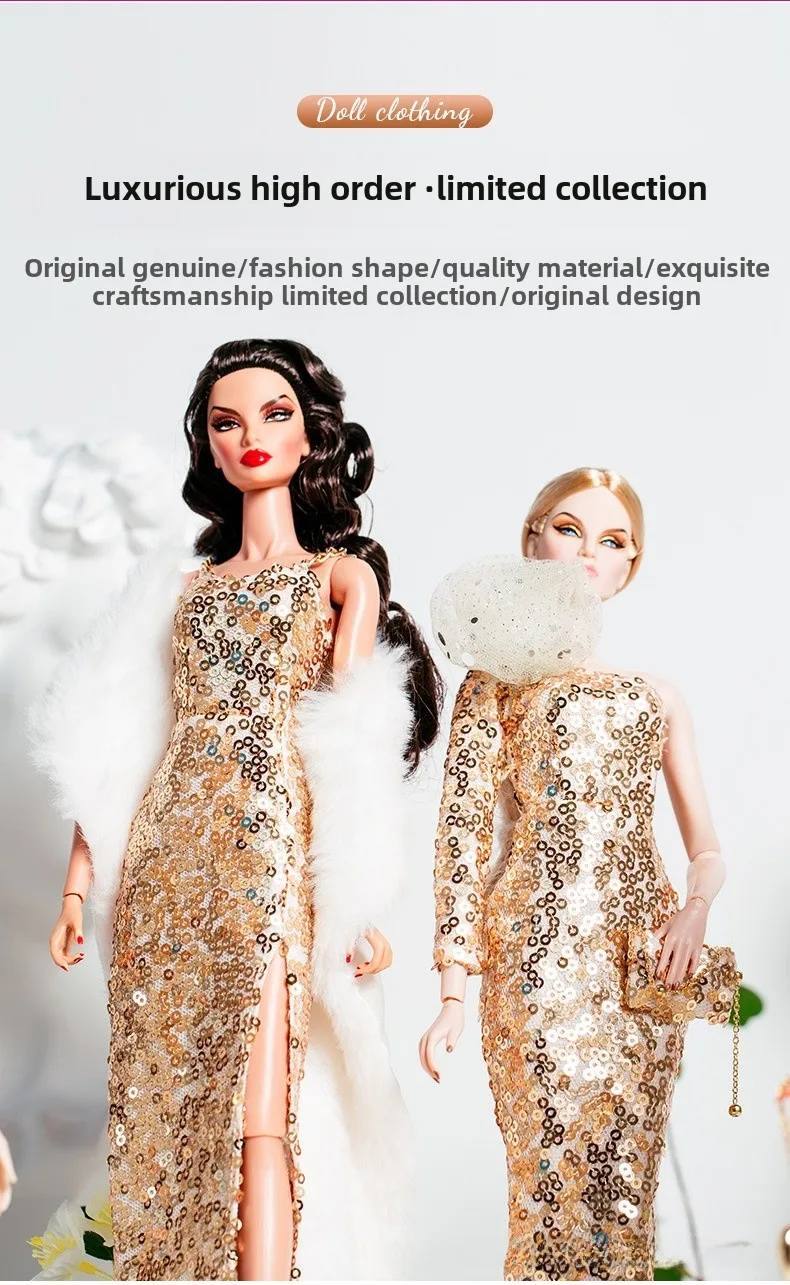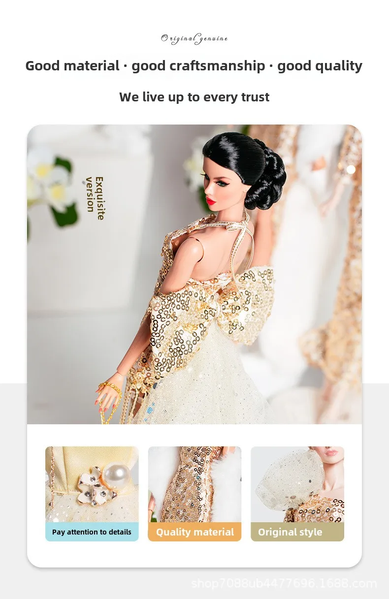 Juguetes dorados de encaje negro, conjunto de vestido para niña de 30cm, regalos de cumpleaños de moda europea, juguetes DIY para niñas, ropa de muñeca BJD de Anime 1/6