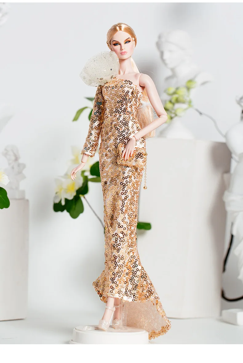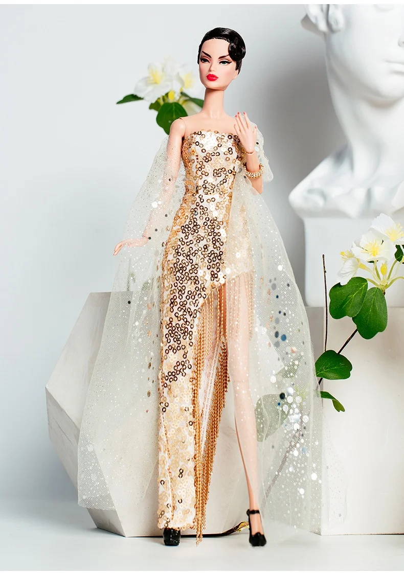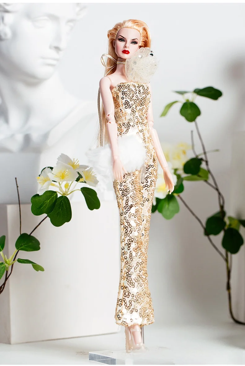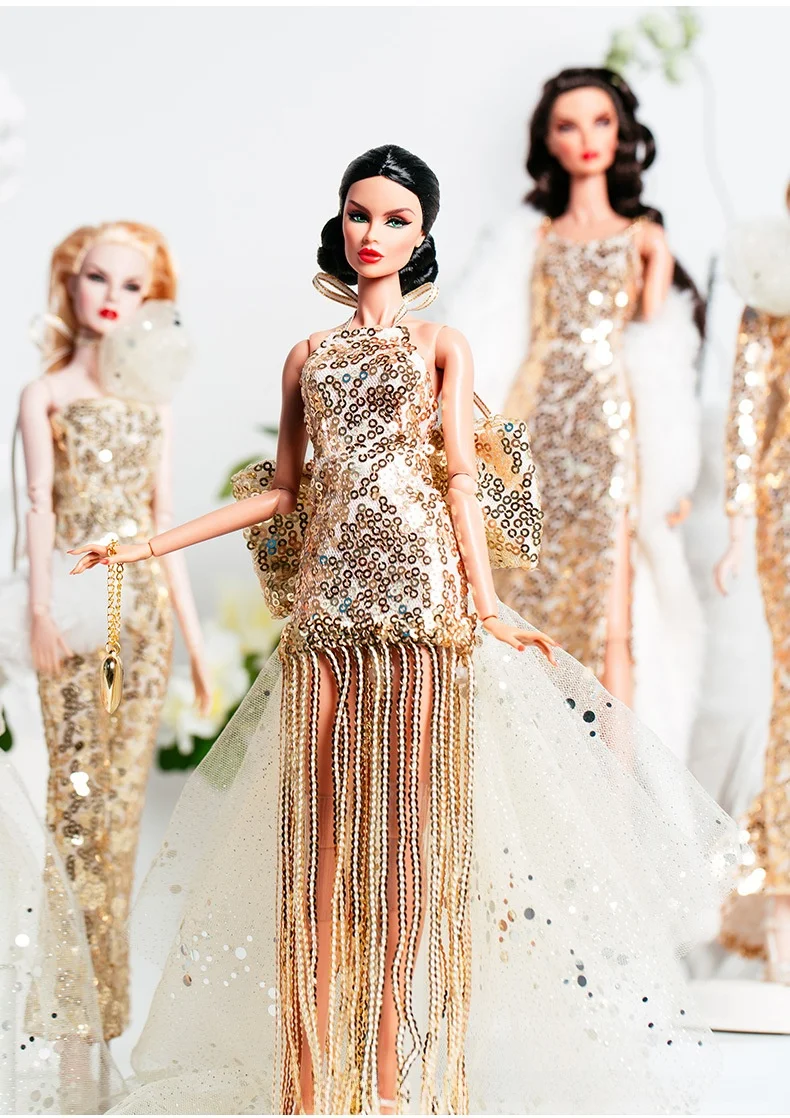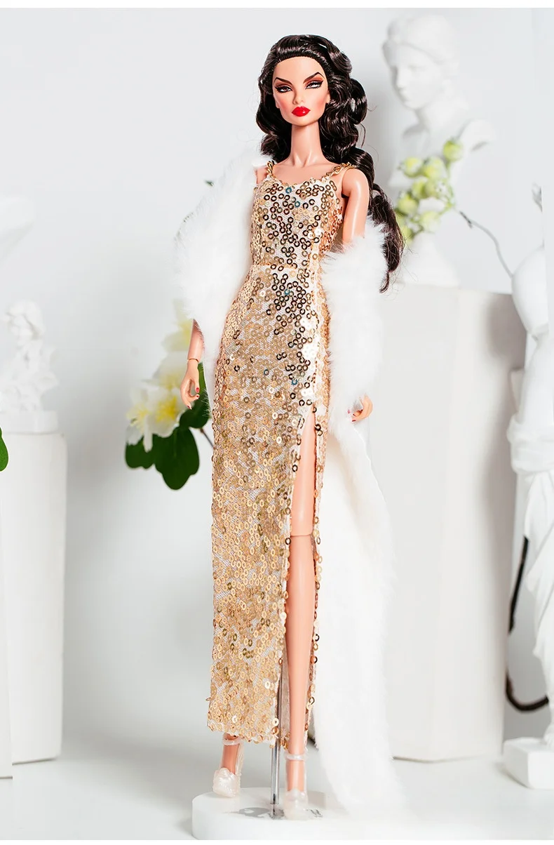 Juguetes dorados de encaje negro, conjunto de vestido para niña de 30cm, regalos de cumpleaños de moda europea, juguetes DIY para niñas, ropa de muñeca BJD de Anime 1/6