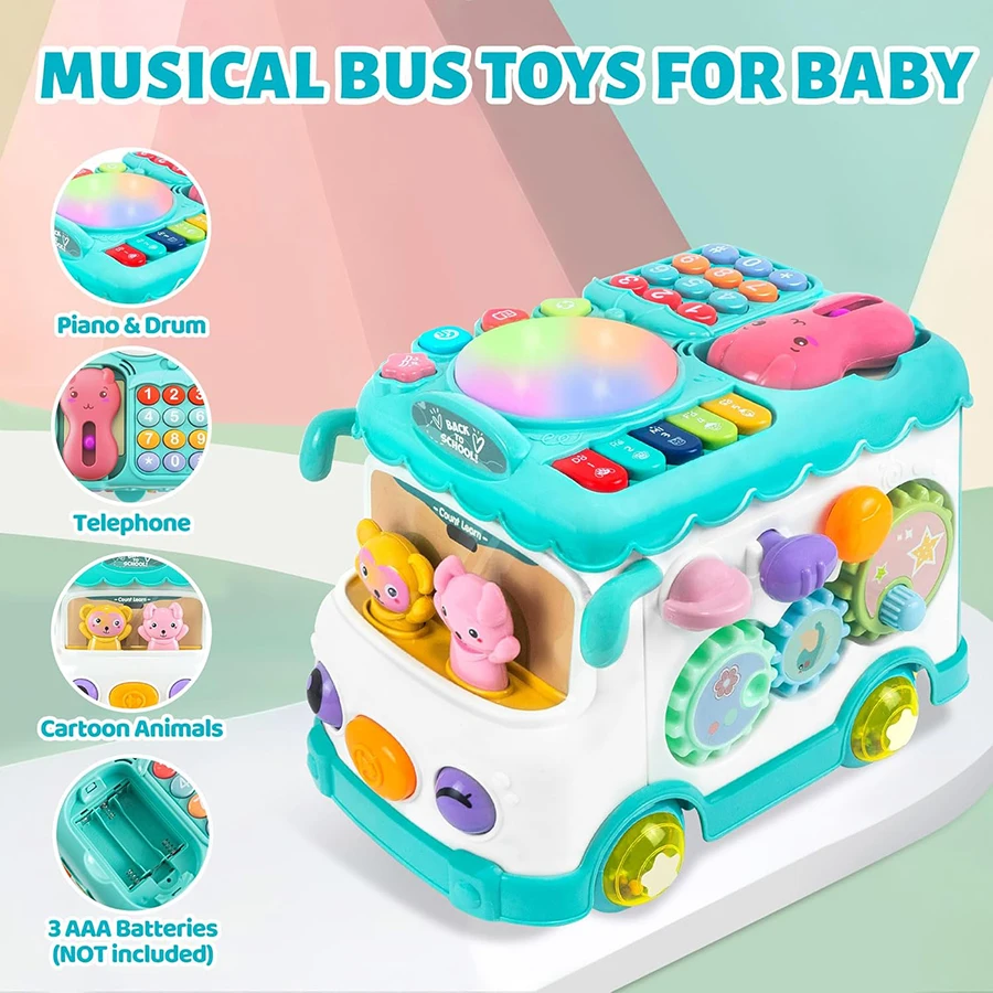Juguete de autobús escolar para bebés para niños pequeños 1-3, 5 en 1, autobús musical Montessori, juguetes, regalos para niñas de 1 año, juguetes de clasificación de formas, instrumentos educativos Montessori para golpear, regalo de cumpleaños, niño y niña