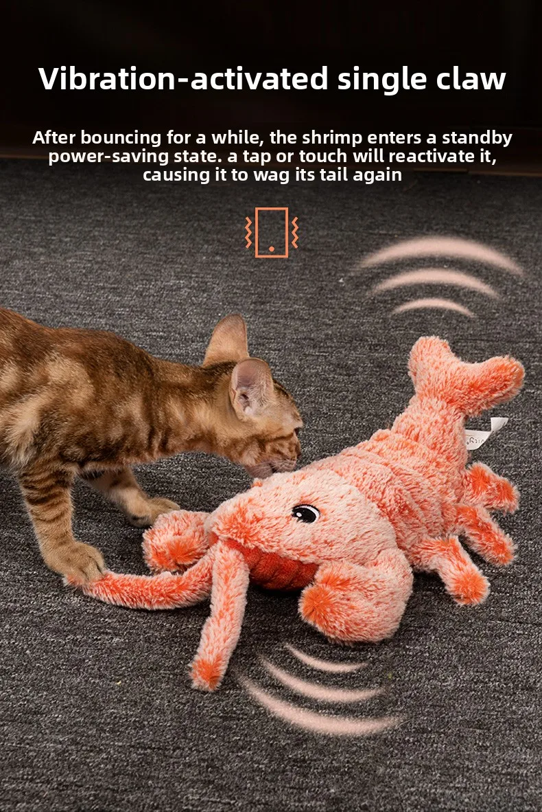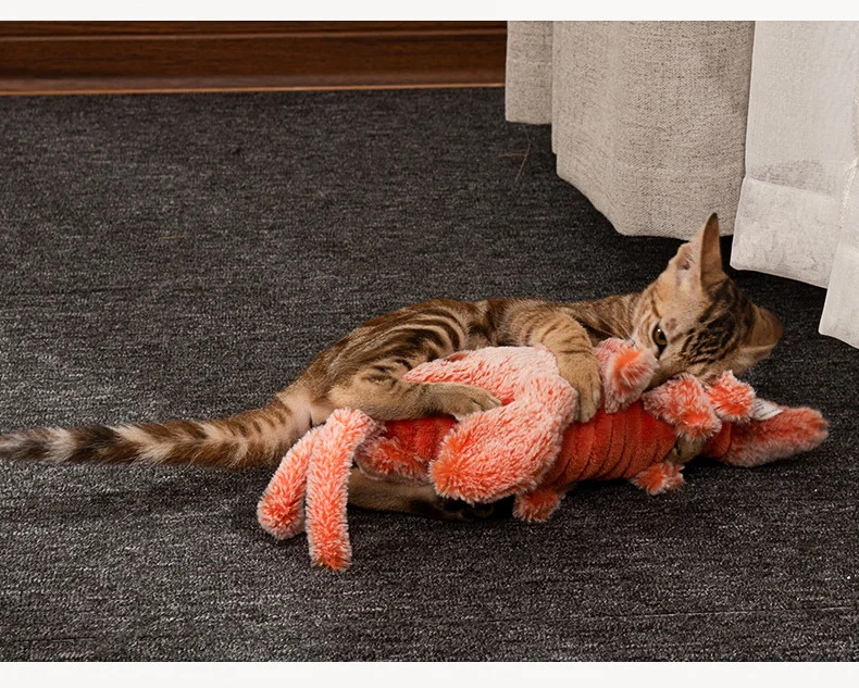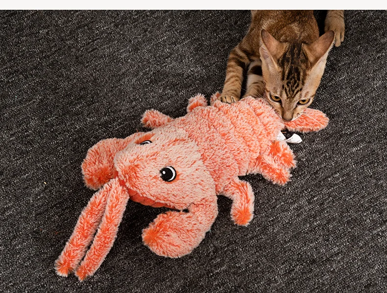 Juguetes eléctricos para mascotas, langosta saltadora simulada, juguetes de peluche para gatos, molares recargables por USB, limpieza de dientes, juguete para perros, camarones saltadores por gravedad