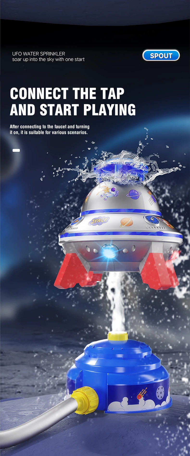 Uso: Conecte el tubo del grifo a la base del aspersor.