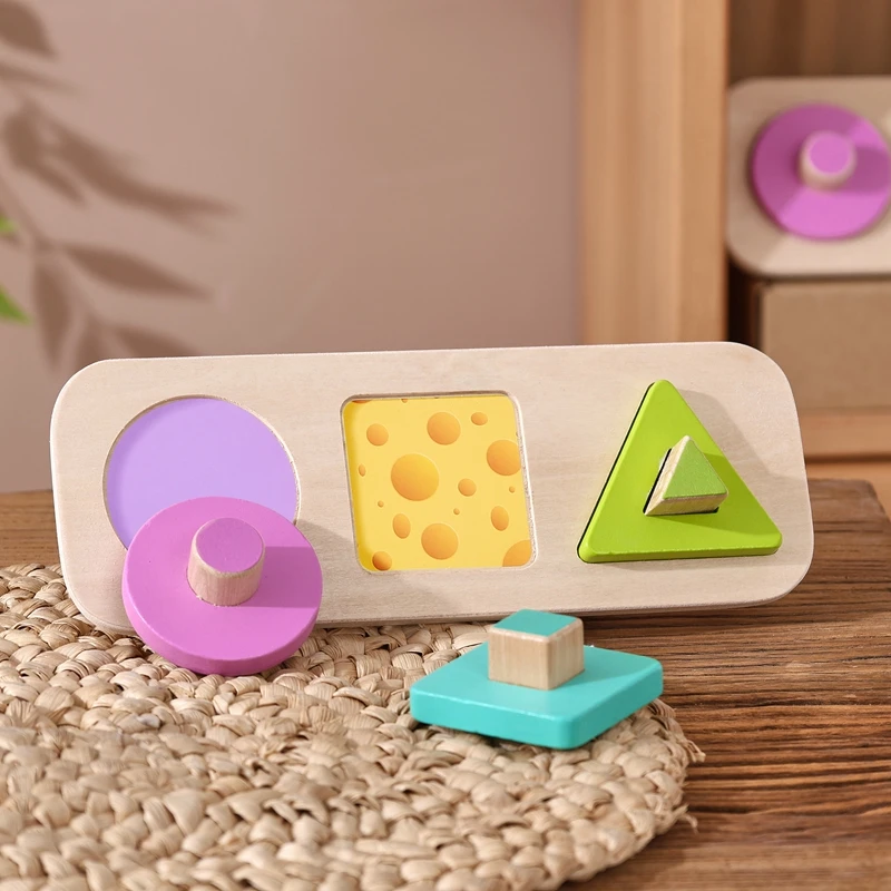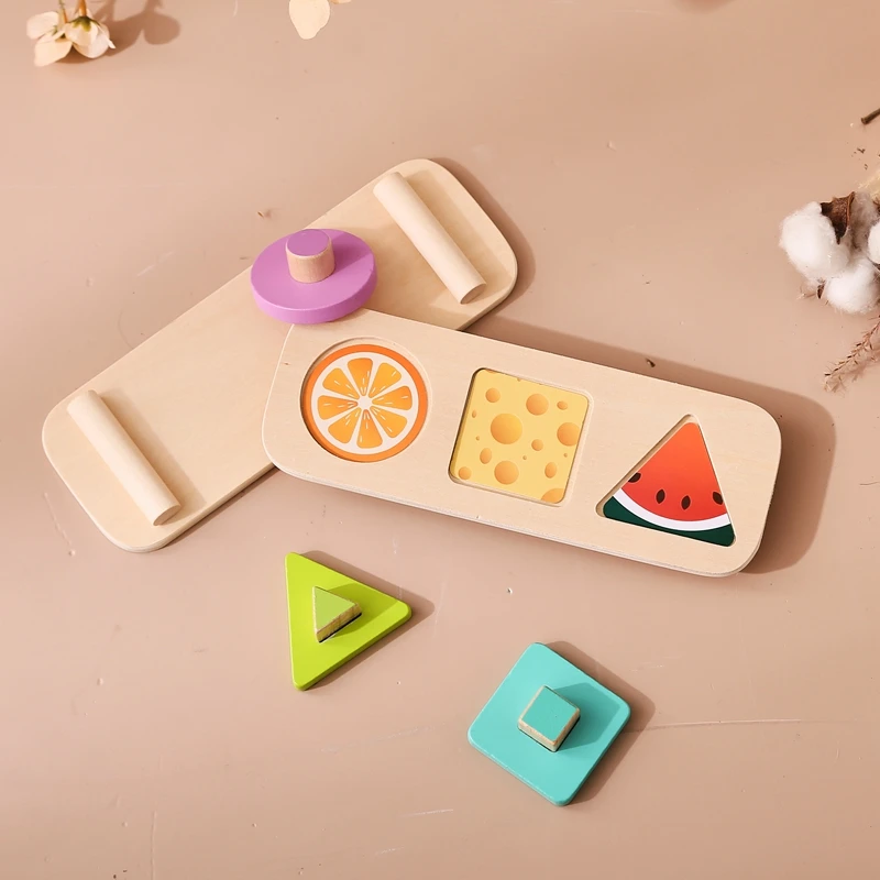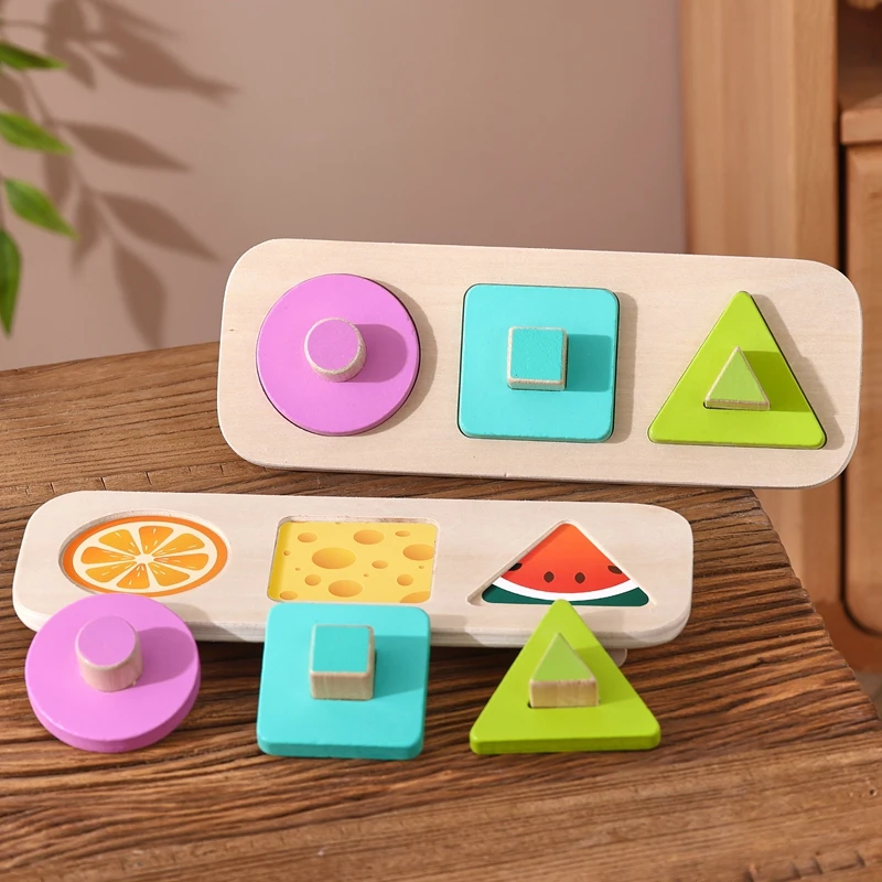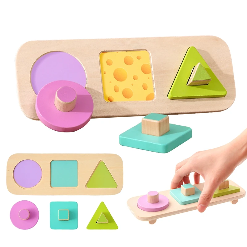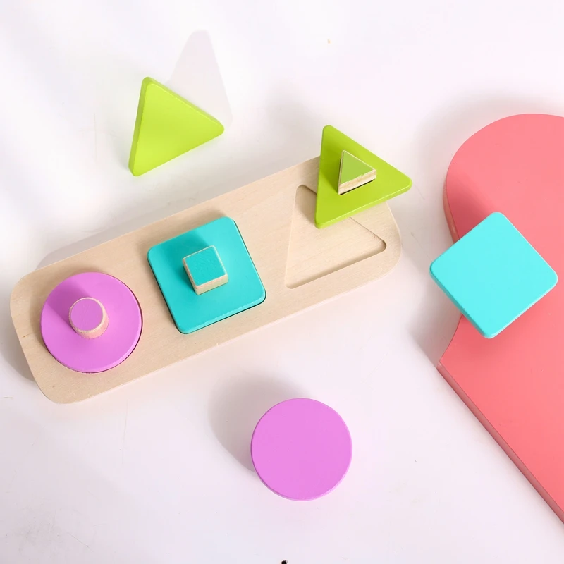 Juguetes de madera Montessori de 0 a 12 meses para bebé, tablero de agarre geométrico colorido, juguetes para recién nacidos, juego de reconocimiento de forma táctil sensorial, juguete para regalo