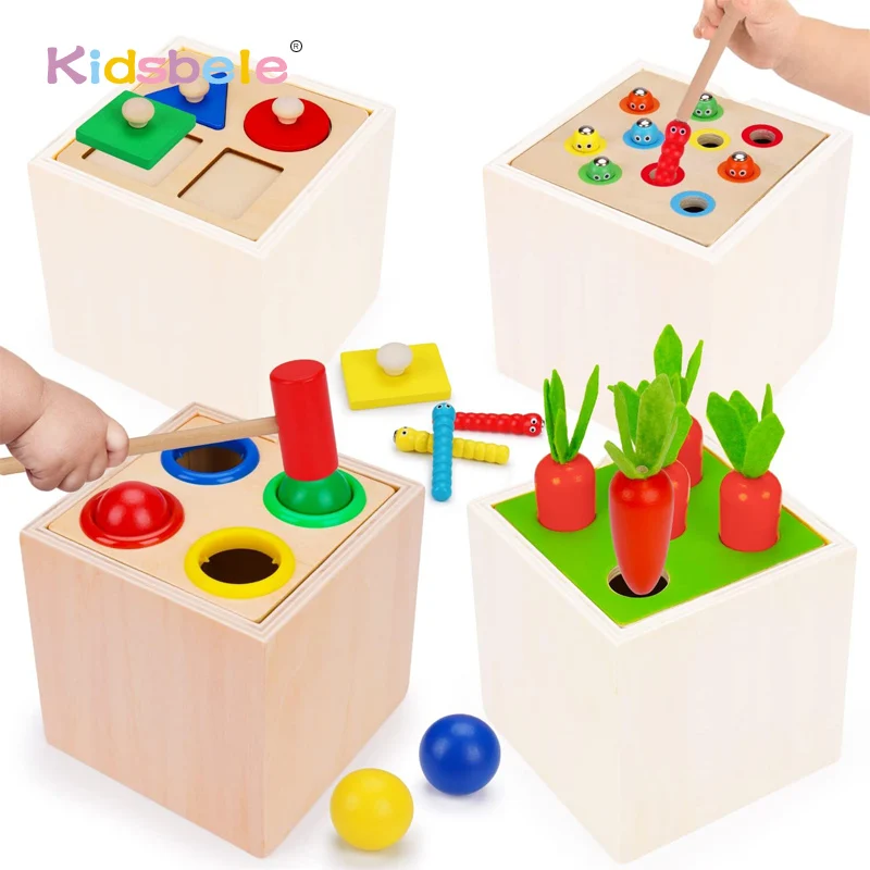 Juguete de madera 5 en 1: El Juguete Montessori le permite a su hijo jugar cinco juegos diferentes: experiencia de pesca divertida, juego de golpeteo de cuatro colores, tirar del rábano, emparejamiento de formas y juego de captura de insectos. Durante el proceso de aprendizaje, los niños no Se aburrirán y se divertirán mucho