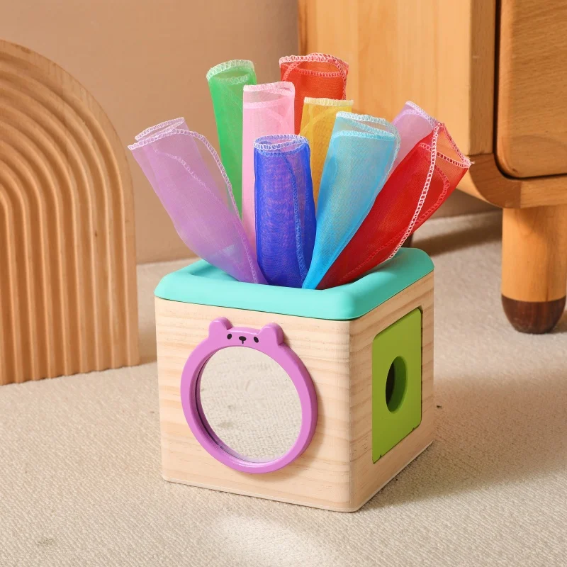 Caja de pañuelos de animales de algodón mágico para niños, juguetes de tablero ocupado para ejercicio de dedo, juego sensorial de actividad educativa para bebés, regalos