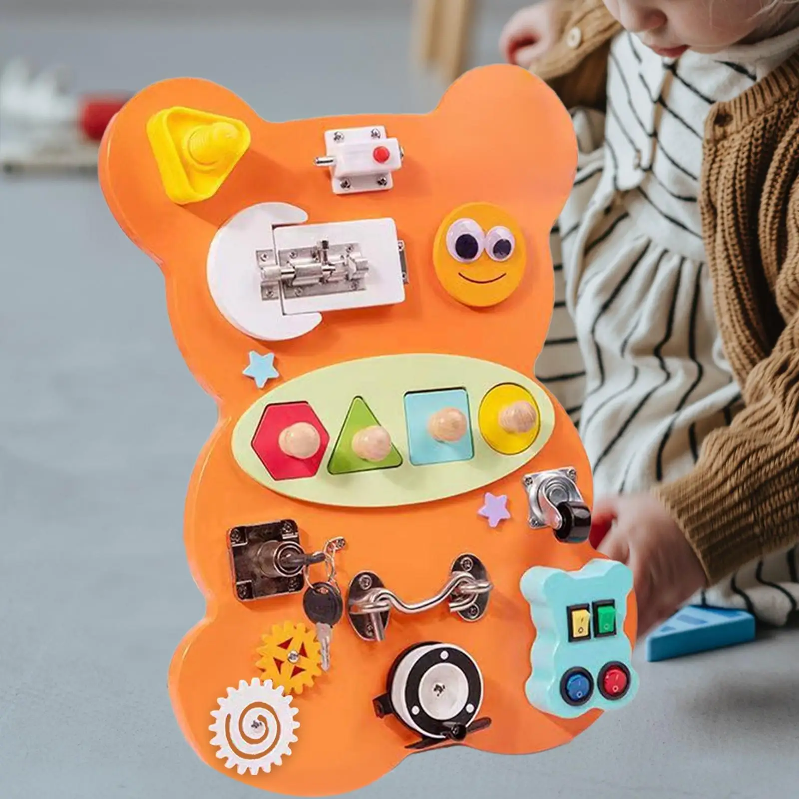 【Diseño seguro y duradero】: Tablero ocupado para niños pequeños con forma de oso bonito, este juguete está hecho de madera de alta calidad con bordes lisos, por lo que es adecuado para niños de 3 años o más.
