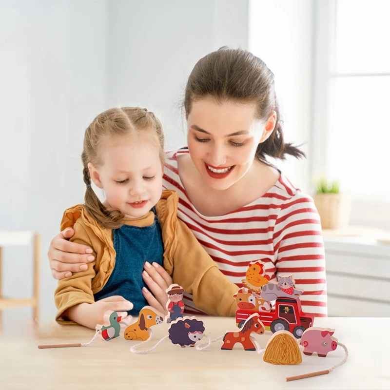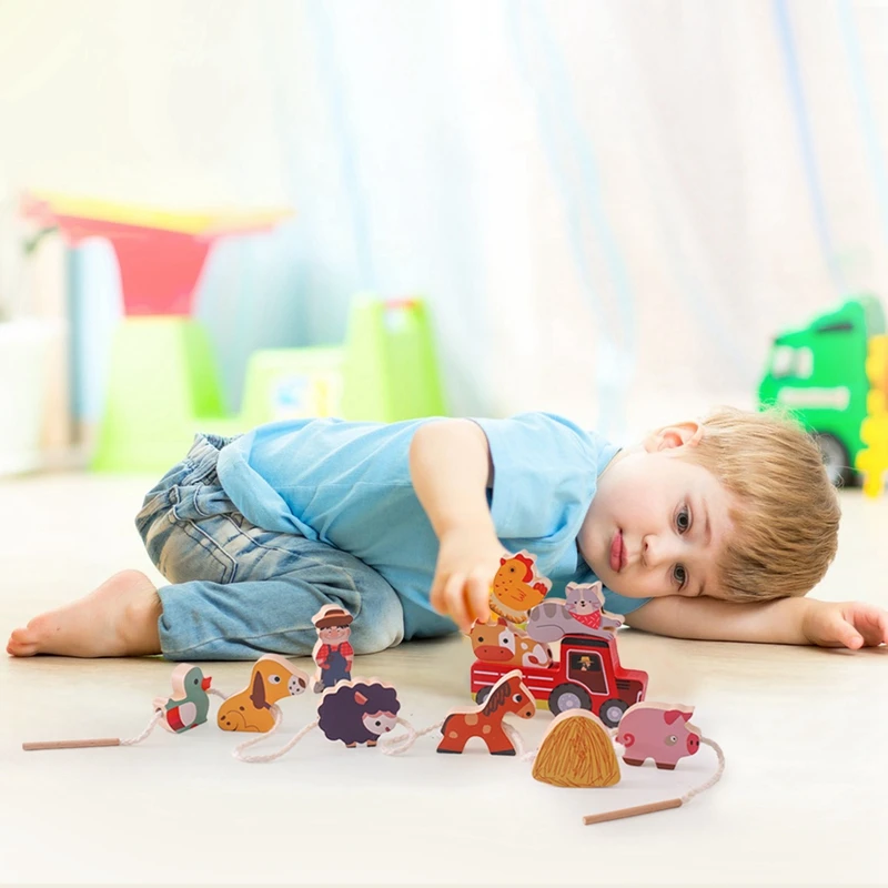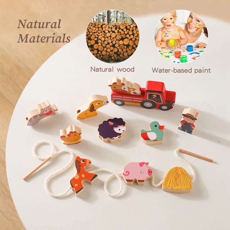 Seguridad y protección del medio ambiente: los juguetes de madera para enhebrar animales generalmente están hechos de madera natural, no tóxicos e inofensivos, muy seguros para la salud de los niños.