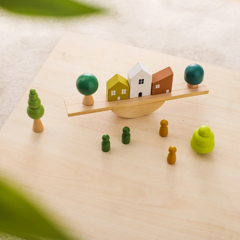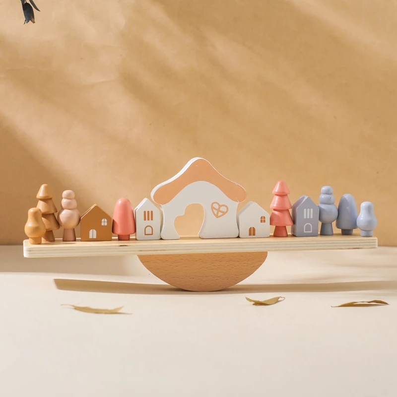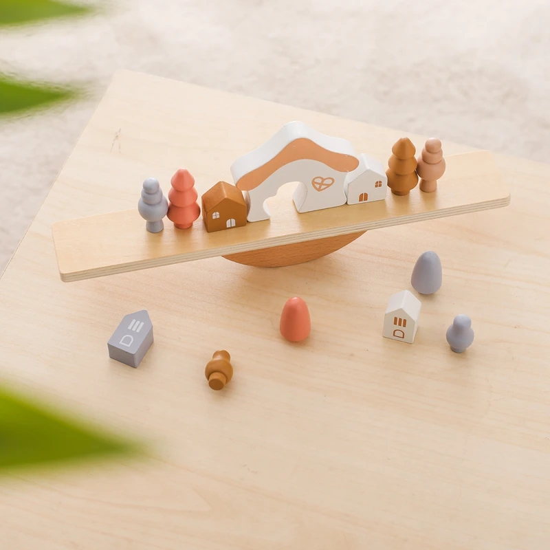 Comprar Juguetes Montessori para niños, juguete de balancín de enhebrado de árbol forestal, juguetes apilables de madera, juego de bloques, capacidad de equilibrio, regalo educativo para niños