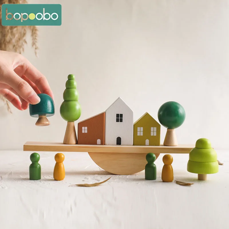 Comprar Juguetes Montessori para niños, juguete de balancín de enhebrado de árbol forestal, juguetes apilables de madera, juego de bloques, capacidad de equilibrio, regalo educativo para niños