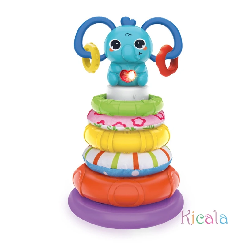 Juguetes musicales apilables para bebés, juegos de torre, juguetes educativos, bloques de construcción de elefante, reconocimiento de Color, juguete interactivo, regalo