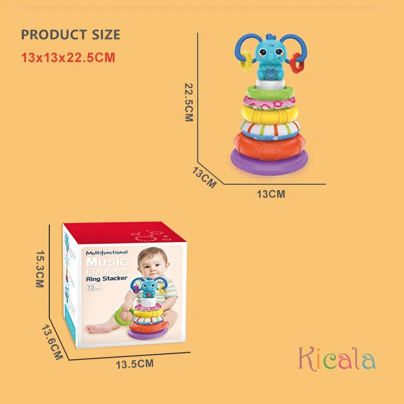 Juguetes musicales de apilamiento para bebés, juegos de torre, juguetes educativos, bloques de construcción de elefante, reconocimiento de Color, juguete interactivo para regalo