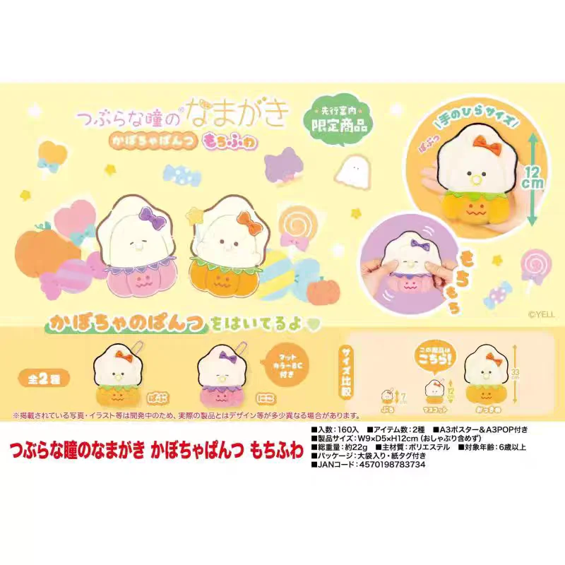 Calabaza y pantalones Namakaki de ojos redondos, suaves y esponjosos.2 tipos disponiblesTamaño del producto: W9xD5xH12cm (sin incluir la pata)Peso total: Aprox.22 gramosMaterial: poliésterEdad recomendada: 6 años en adelanteJAN: 4570198783734