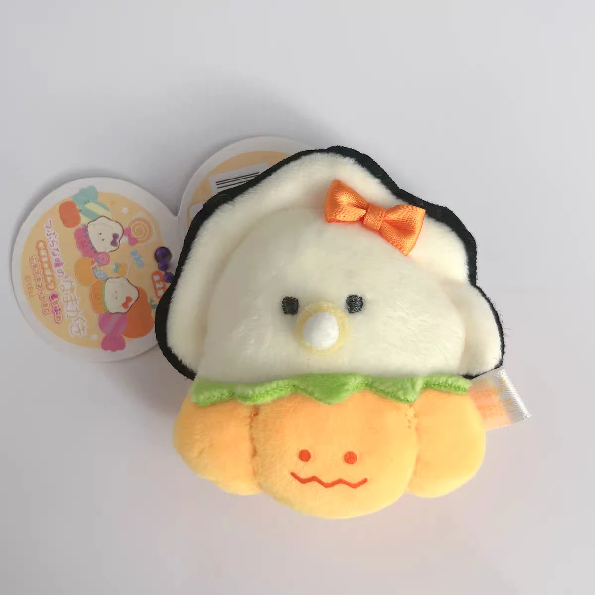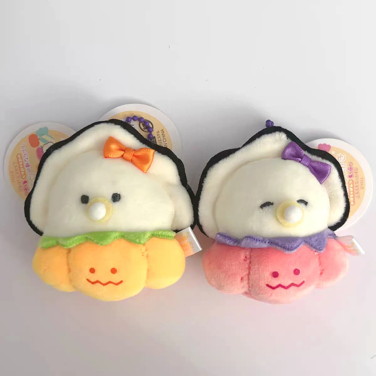 Comprar Juguetes de peluche de 7cm, lindo chupete de ojos redondos, ostra, bebé, pantalones de calabaza de Halloween, lazo, figuras colgantes de cadena de bolas suaves y esponjosas