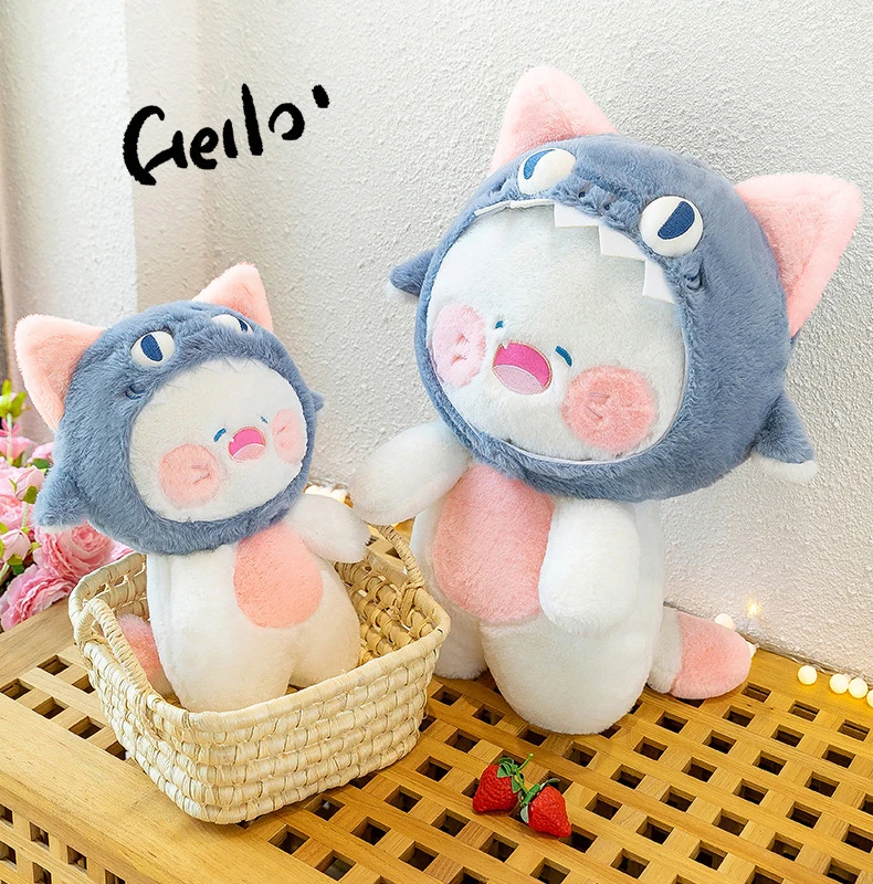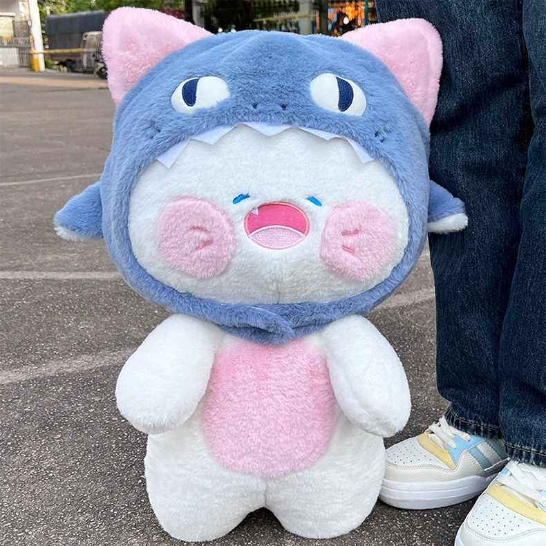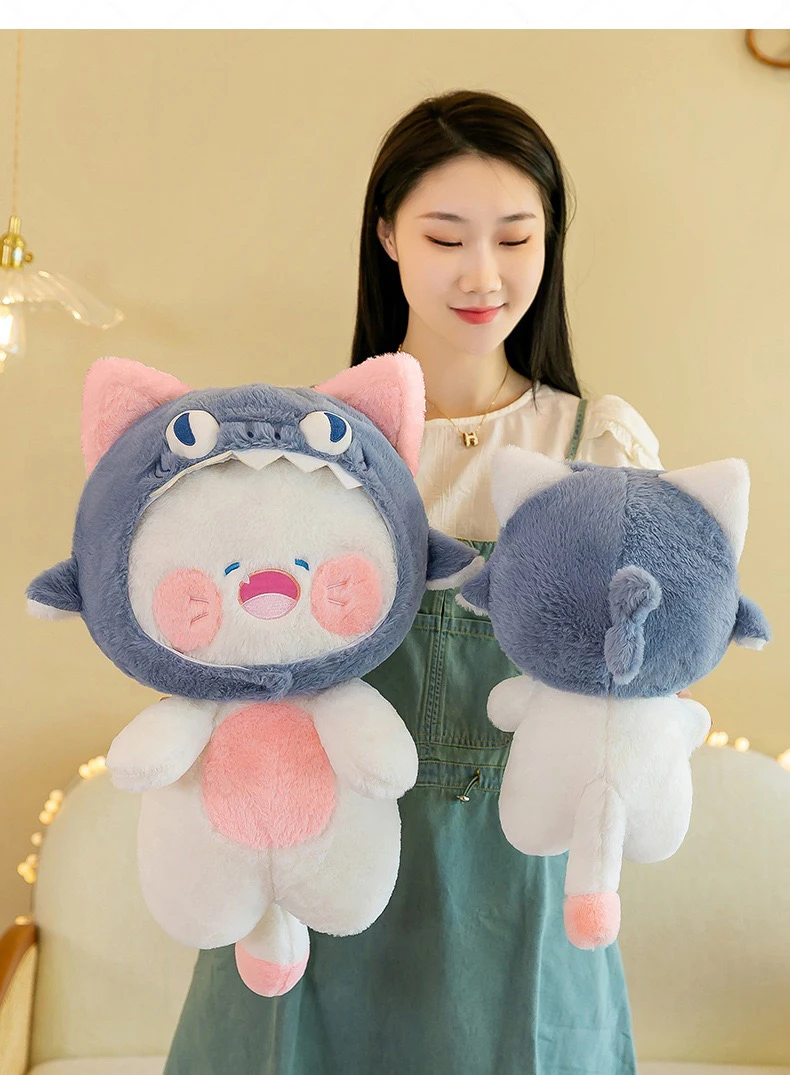 Diseño único.Este juguete de peluche presenta una fusión creativa de tiburón y gato, ofreciendo un diseño único que destaca.