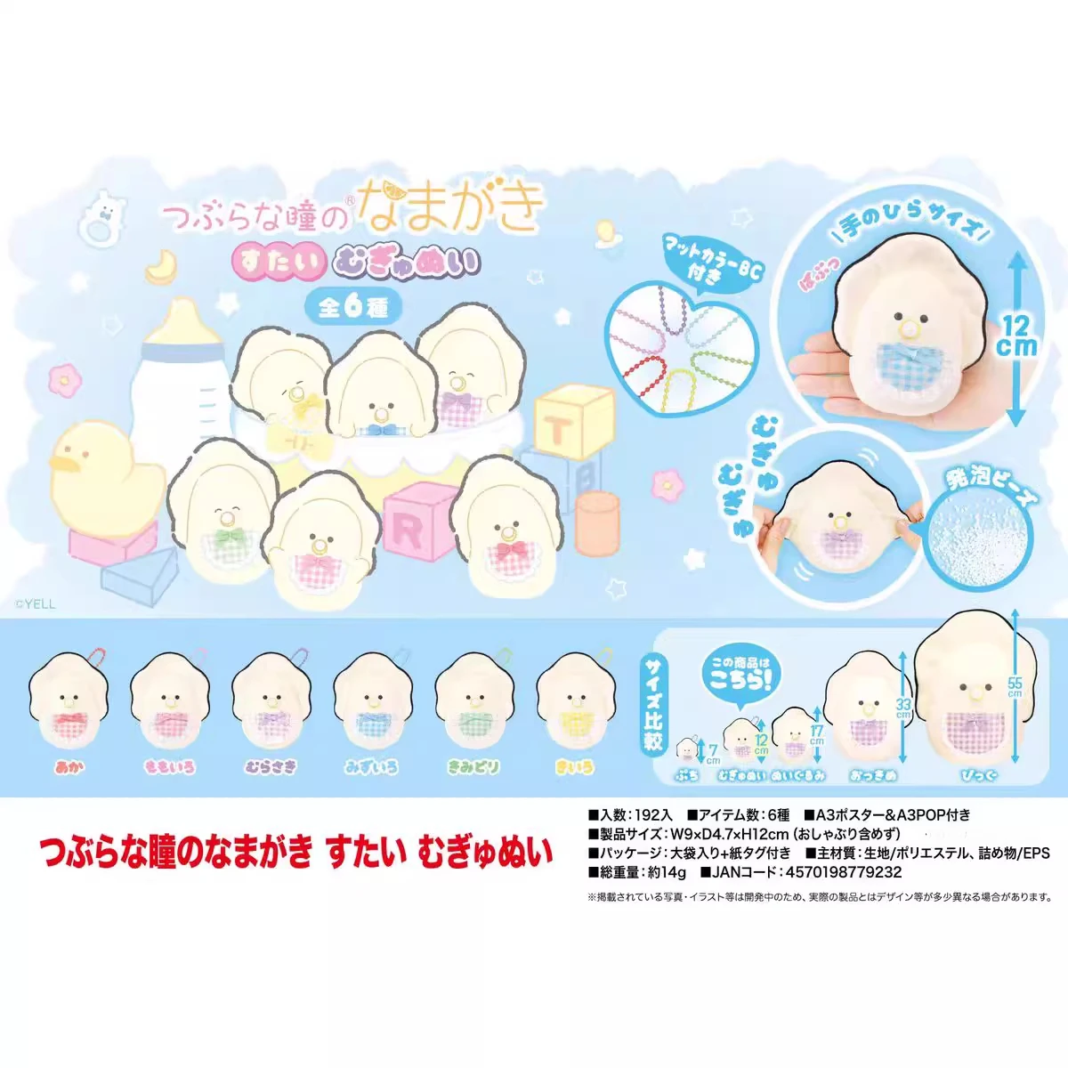Juguetes de peluche grados, chupete de ojos redondos bonito de 12cm, ostra con babero Mugyunui Petit palma mascota BC Namagaki, llavero, colgante de paraguas