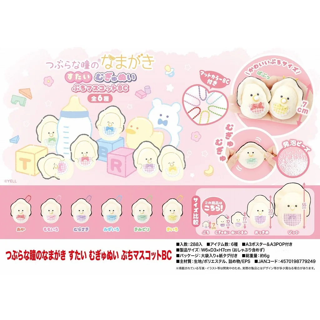 ¡La mascota "Round Eyed Uu-gaki Style Mugyunui Petit Mascot BC" está aquí! Esta es una variedad de 6 tipos de "Babyowie-gaki" con chupetes que usan lindos "estilos" (baberos) con patrones a cuadros y cintas.