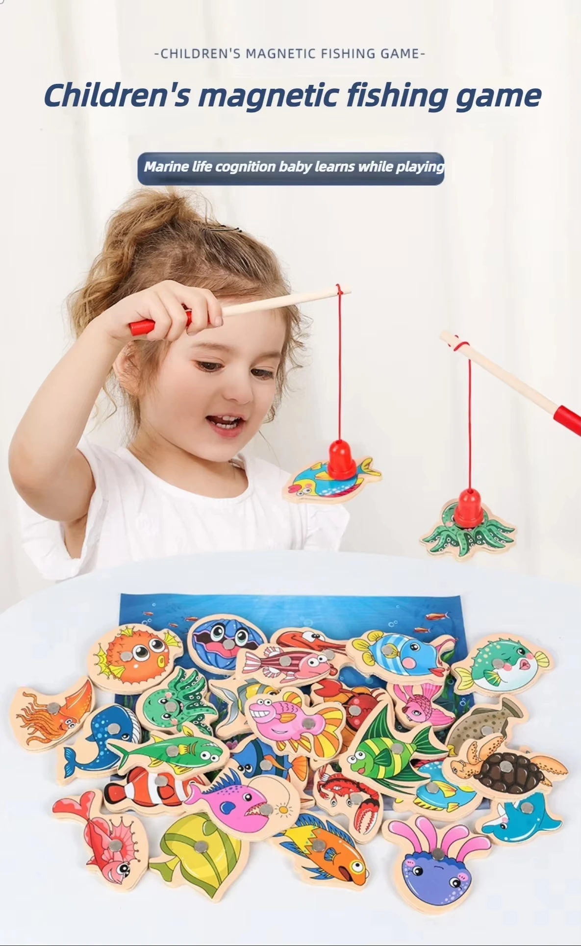 Comprar Juguetes de pesca magnéticos de madera Montessori: cognición marina, educación temprana, desarrollo del cerebro, juguete para padres e hijos para niños y niñas