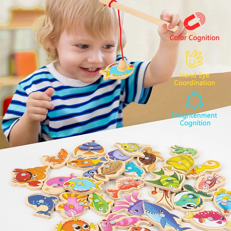 Comprar Juguetes de pesca magnéticos de madera Montessori: cognición marina, educación temprana, desarrollo del cerebro, juguete para padres e hijos para niños y niñas