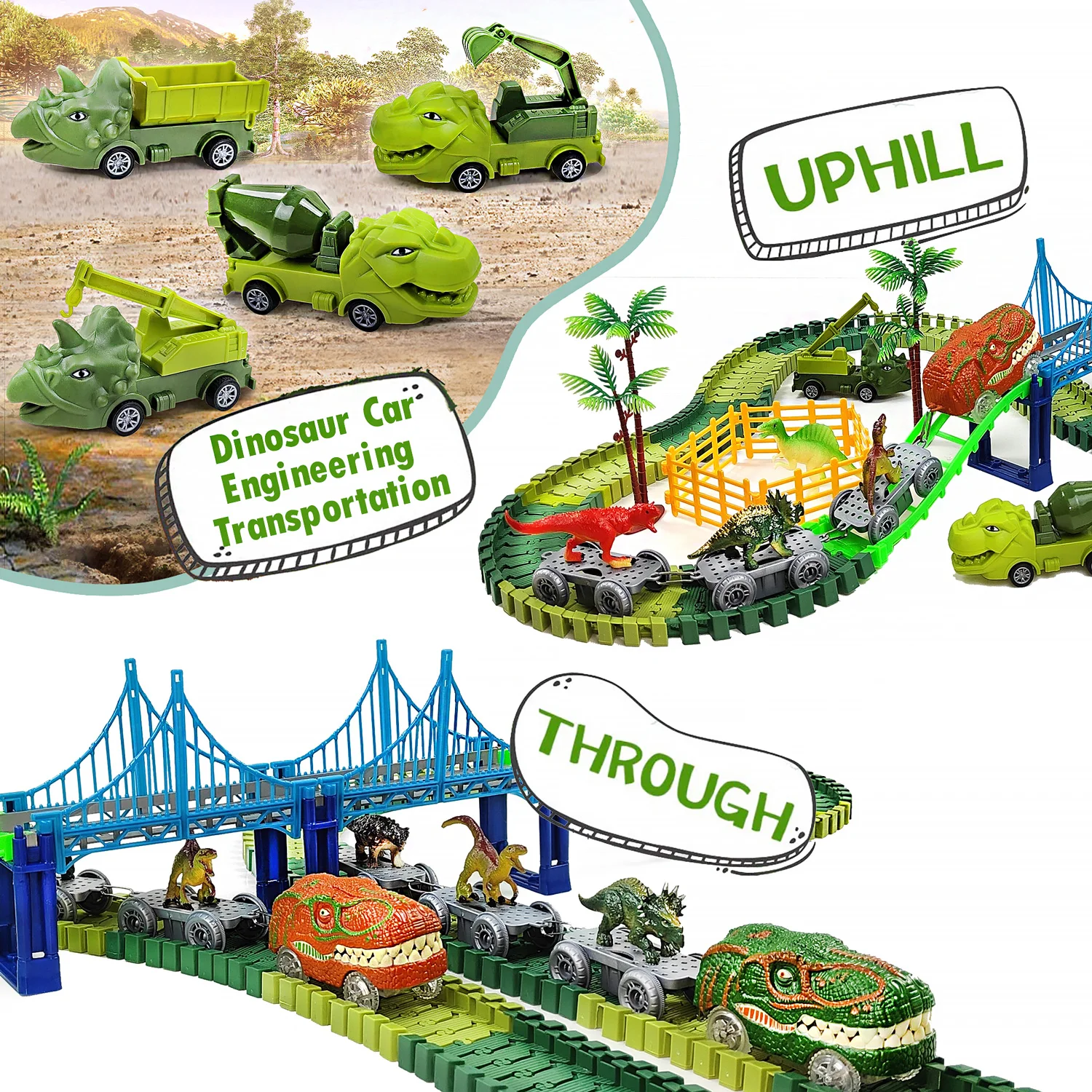 Pista de carrera con temática de dinosaurios: cree una pista de dinosaurios única del mundo de los dinosaurios.Un buen juguete de interacción para niños y niñas.