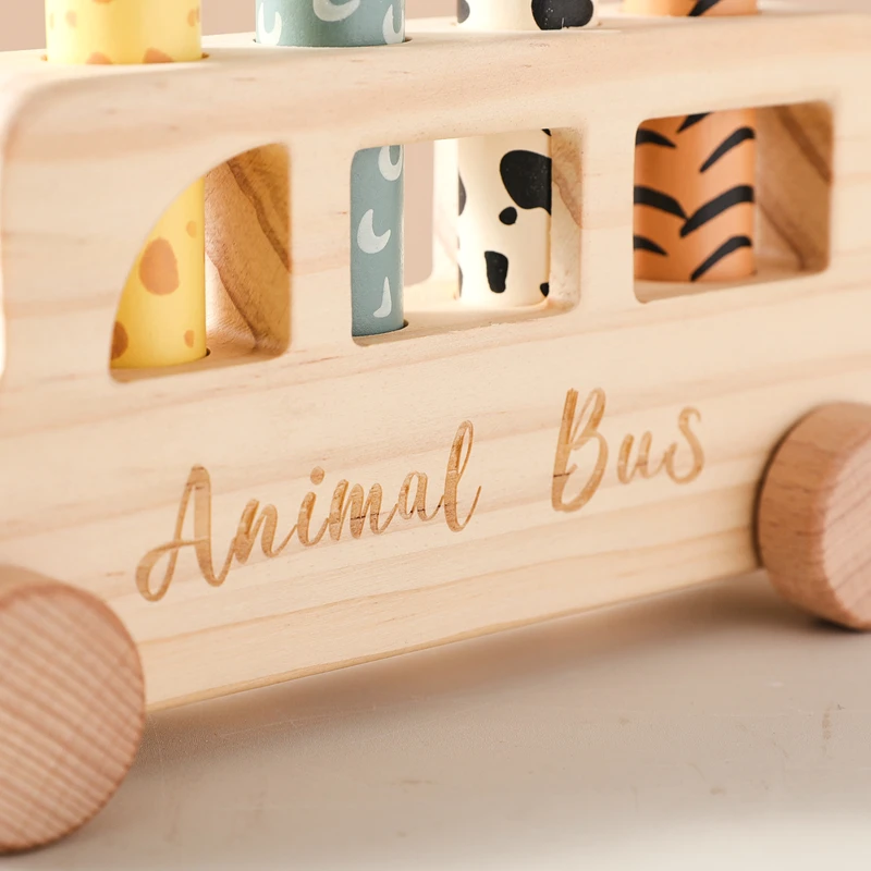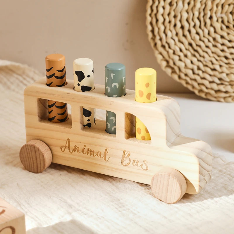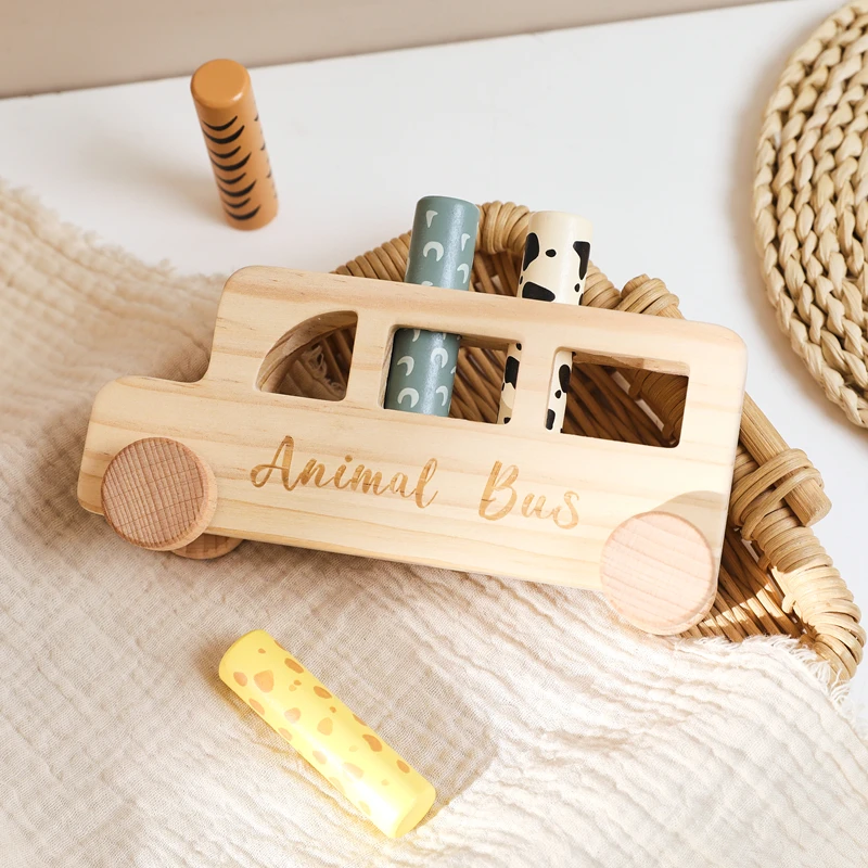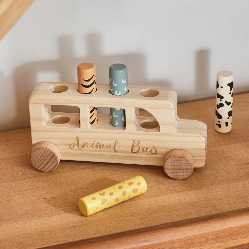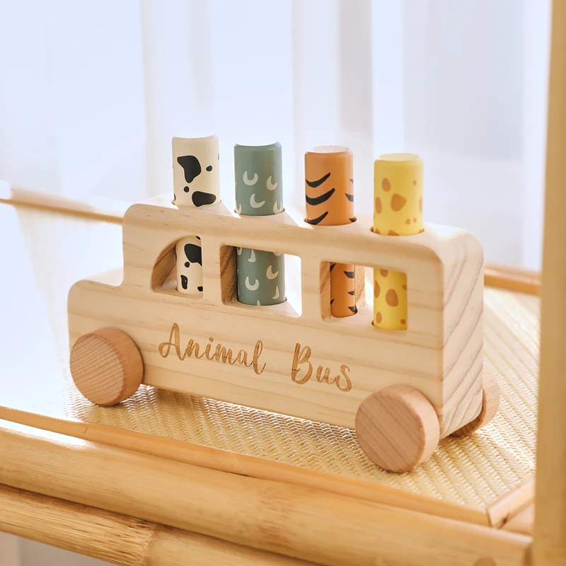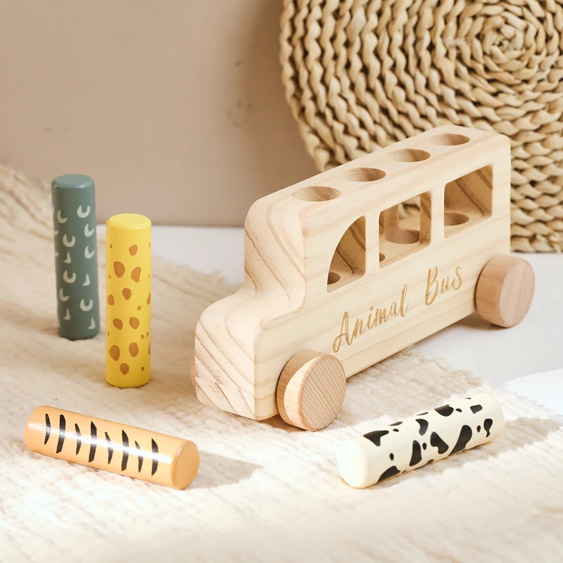 Coche de juguete de madera para bebé, Animal bus en forma de educación recién nacido, rompecabezas sensorial, coordinación mano-ojo, juguete de entrenamiento, regalo para bebé