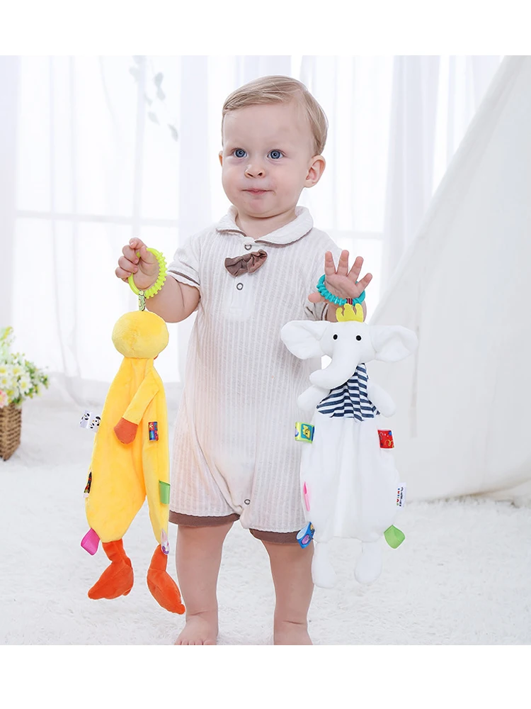 Juguetes De sonajero de toalla calmante de animales lindos para bebés, regalo para recién nacidos de 0 a 12 meses, juguete para dormir, juguetes de peluche suaves, edredón para bebés