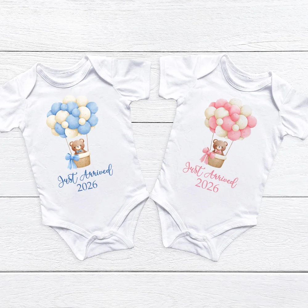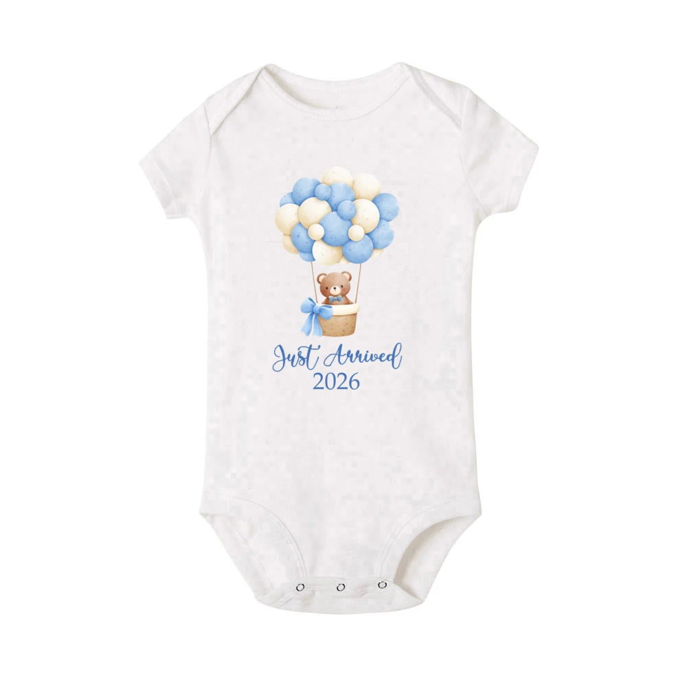 Comprar Just Arrived 2026 Body con estampado para bebé, anuncio de embarazo, traje para recién nacido, mono de oso para niños y niñas, pelele infantil de manga corta