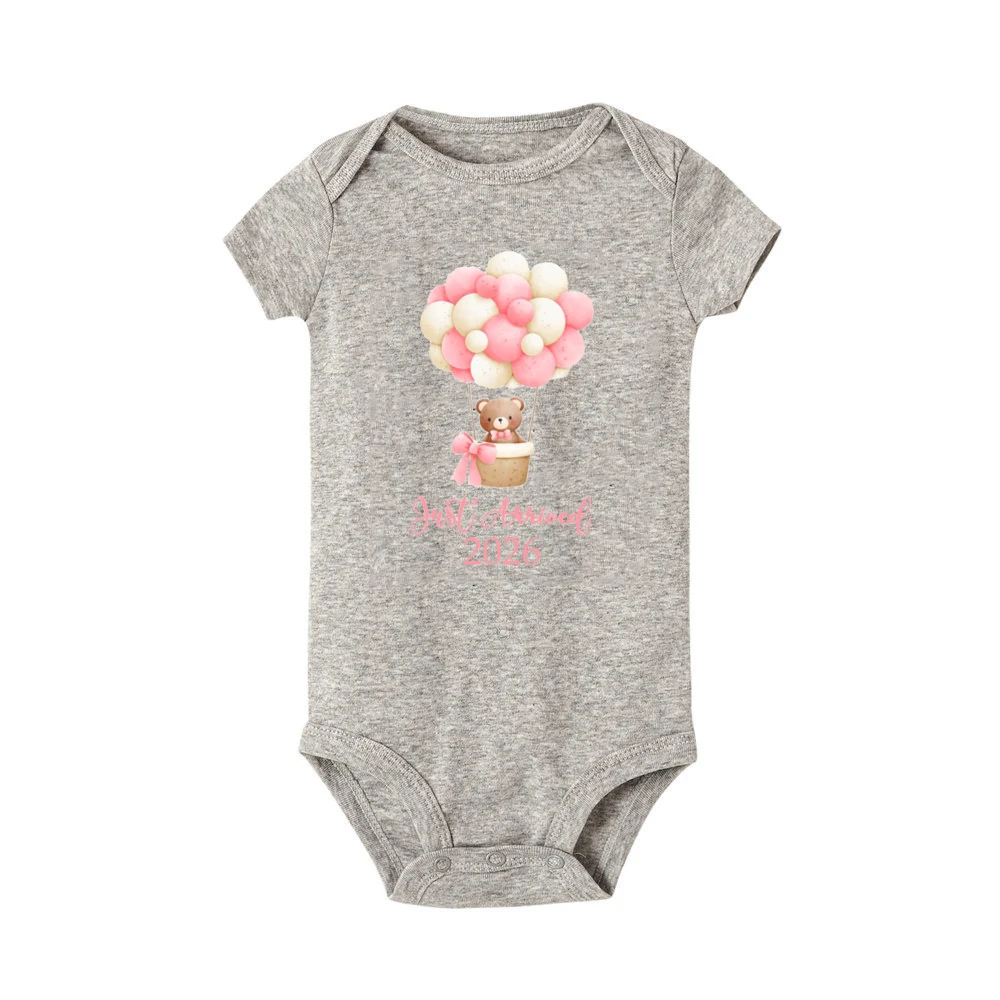 Just Arrivo 2026 Body con estampado para bebé Anuncio de embarazo Traje para recién nacido Niños Niñas Mono de oso mameluco infantil de manga corta