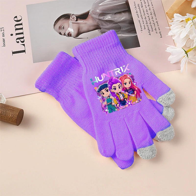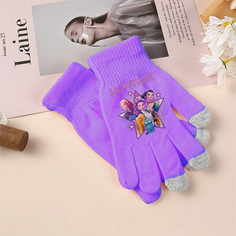 Comprar K Pop Demon Hunters niñas guantes para adultos mujer pantalla guantes señora invierno cálido dibujos animados Anime accesorios de moda cumpleaños lindo regalo