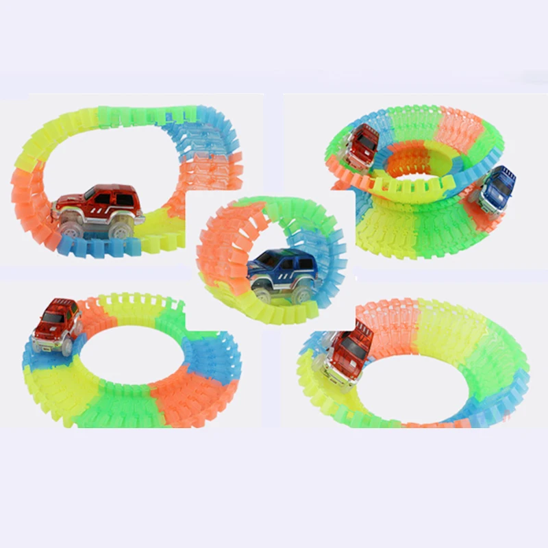 Comprar KACUU-pista de carrera mágica brillante, accesorios universales DIY, rampa de pista de carreras, puente de carretera, cruce, juguetes para niños, regalo