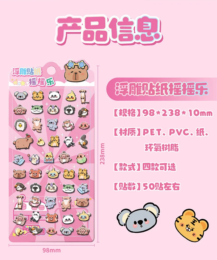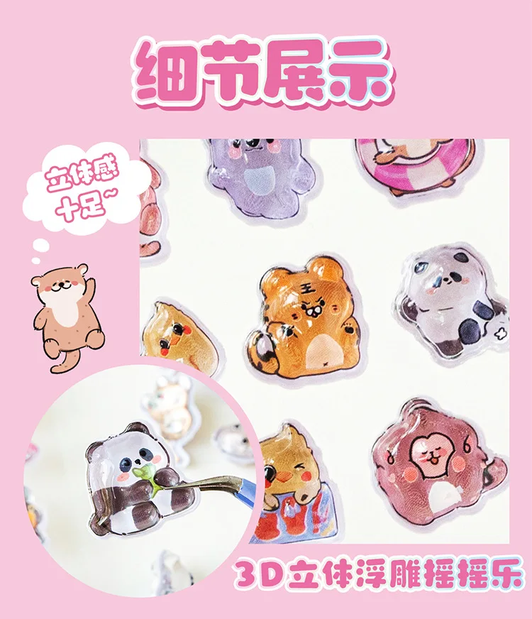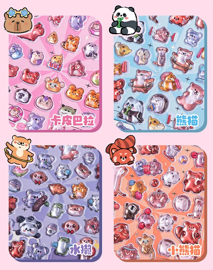 Kapibara-pegatina en relieve 3d, pegatina decorativa divertida para estudiantes, pegatina de cristal transparente impermeable, pegatinas DIY