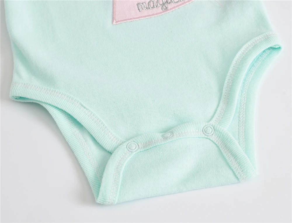 Kavkas verano bebé niñas mono manga corta 3 unids/set 100% algodón recién nacido Ropa unicornio diseño monos