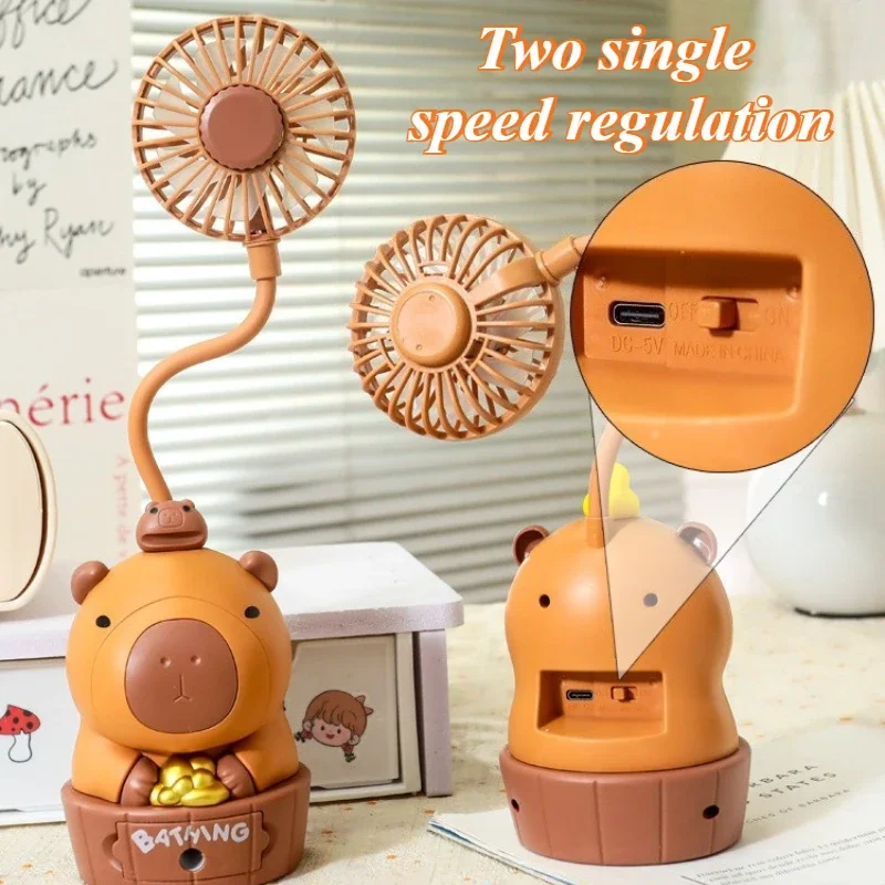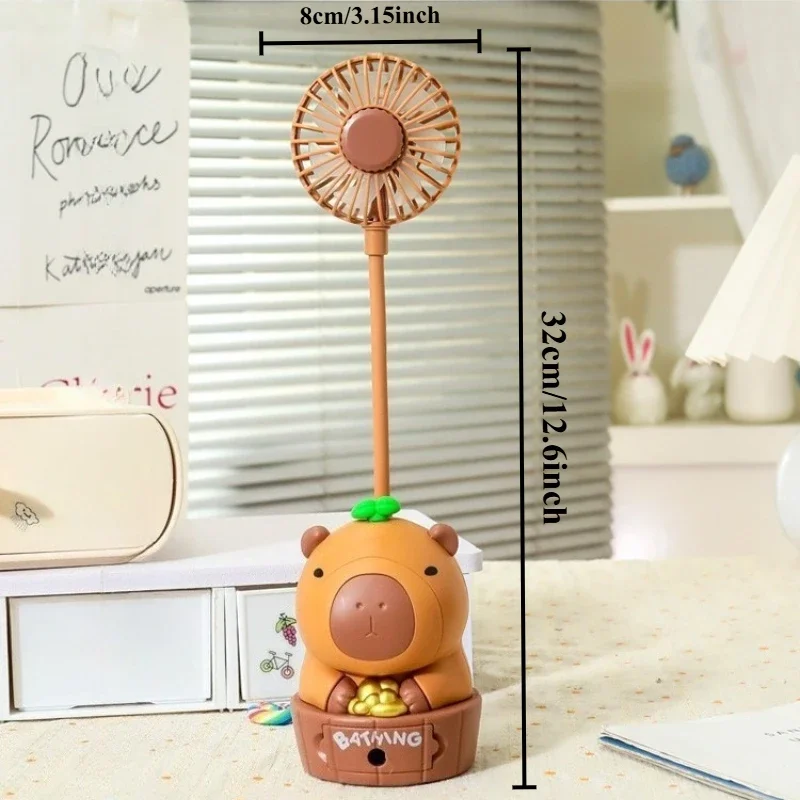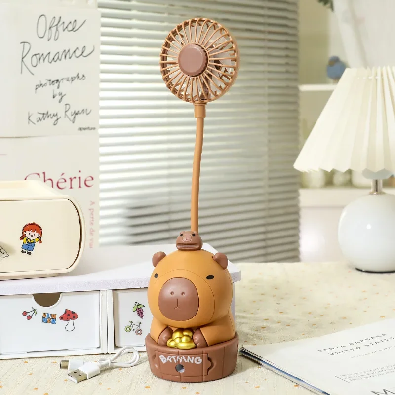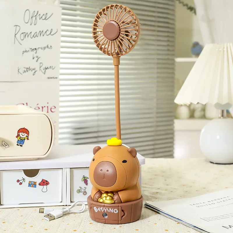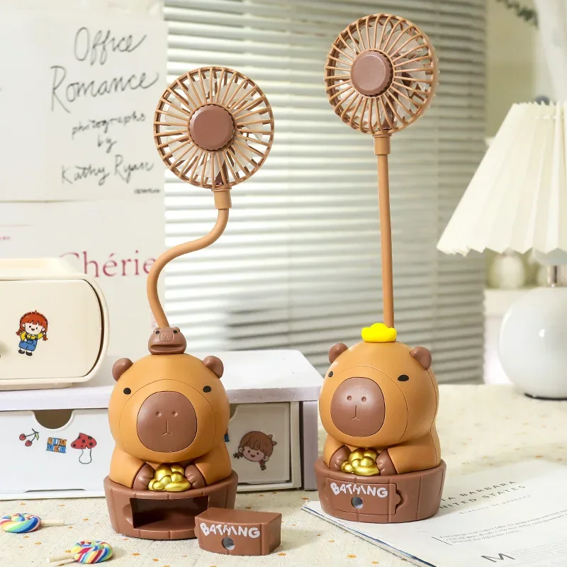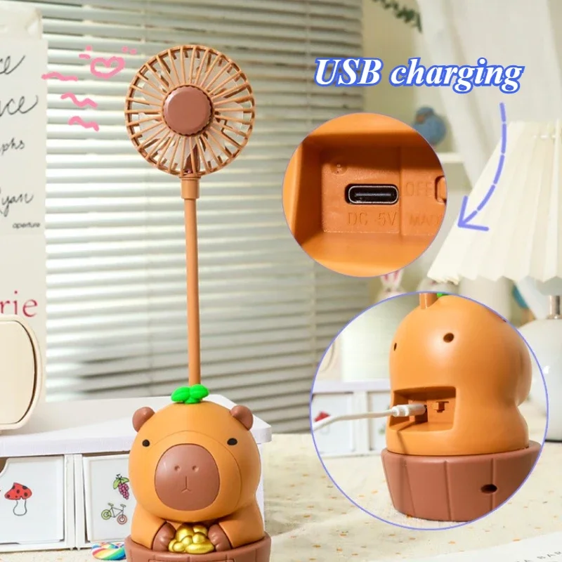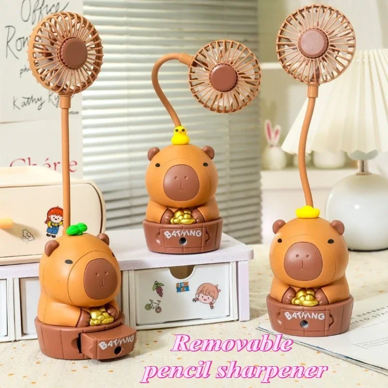 Kawaii Capybara ventilador de carga sacapuntas plegable suave lindo dibujos animados USB ventilador de escritorio regalo de vacaciones para niños suministros escolares