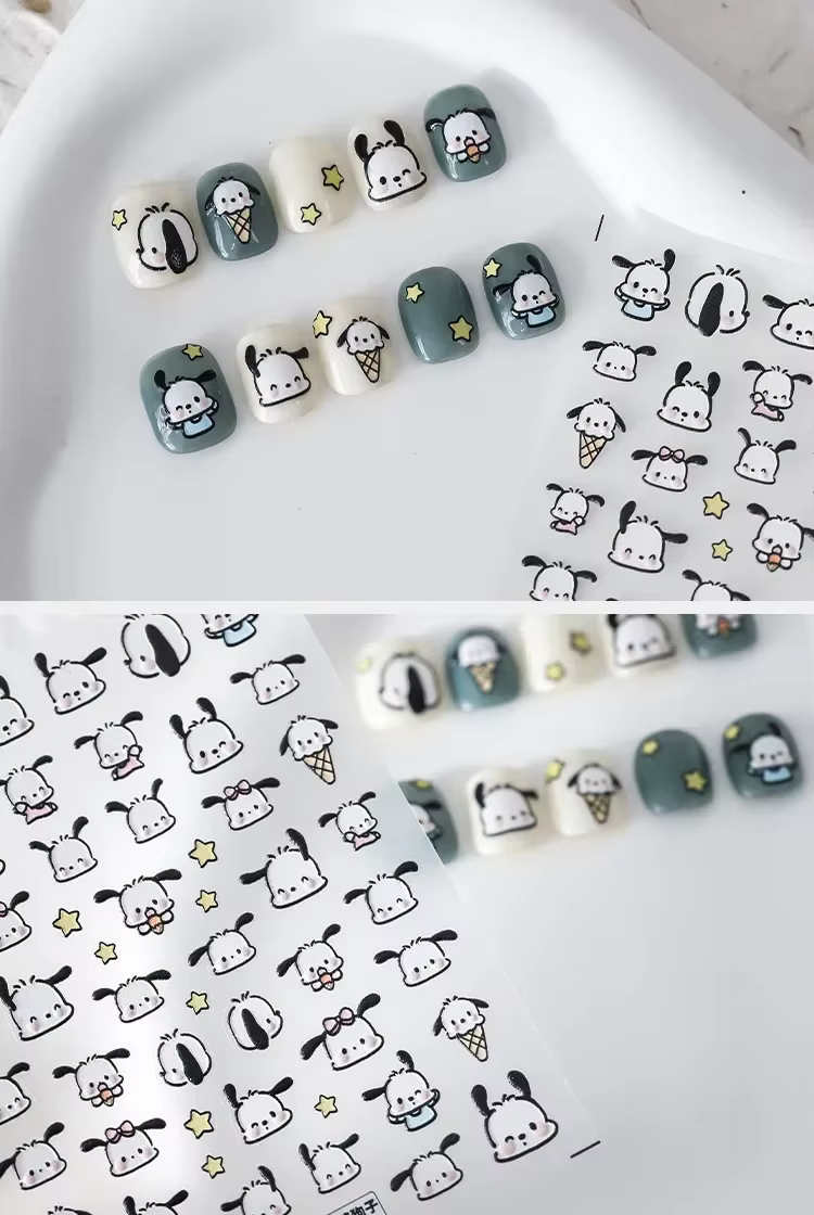 Kawaii Sanrio Anime pegatinas de Arte de uñas en relieve Pochacco 5D pegatinas de uñas joyería de corazones para niñas cosas DIY pegatinas de alta gama