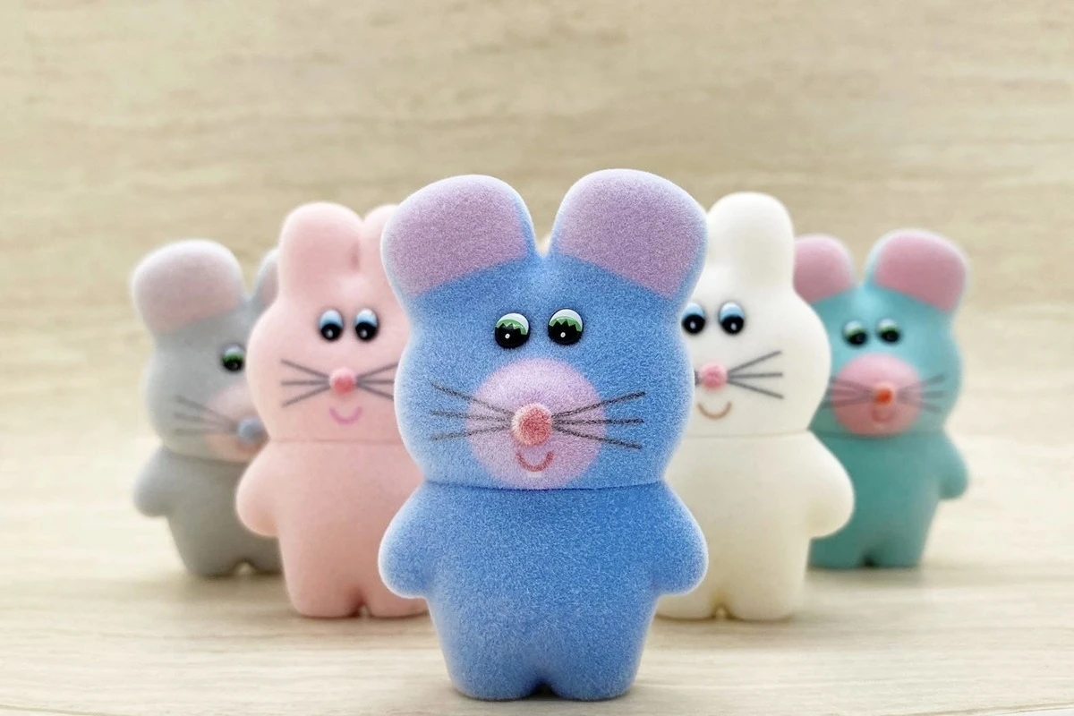 Comprar Kenelephant cápsula juguetes lindo ratón pequeño flocado mascota ojos redondos rata esponjosa miniaturas de pie adornos figuras gashapon