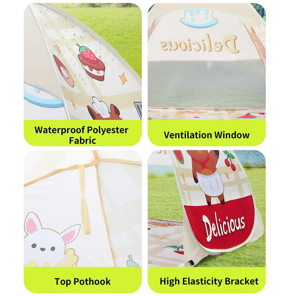 La tienda cuenta con rejillas de ventilación para un flujo de aire adecuado, manteniendo el interior fresco y cómodo para sus pequeños.