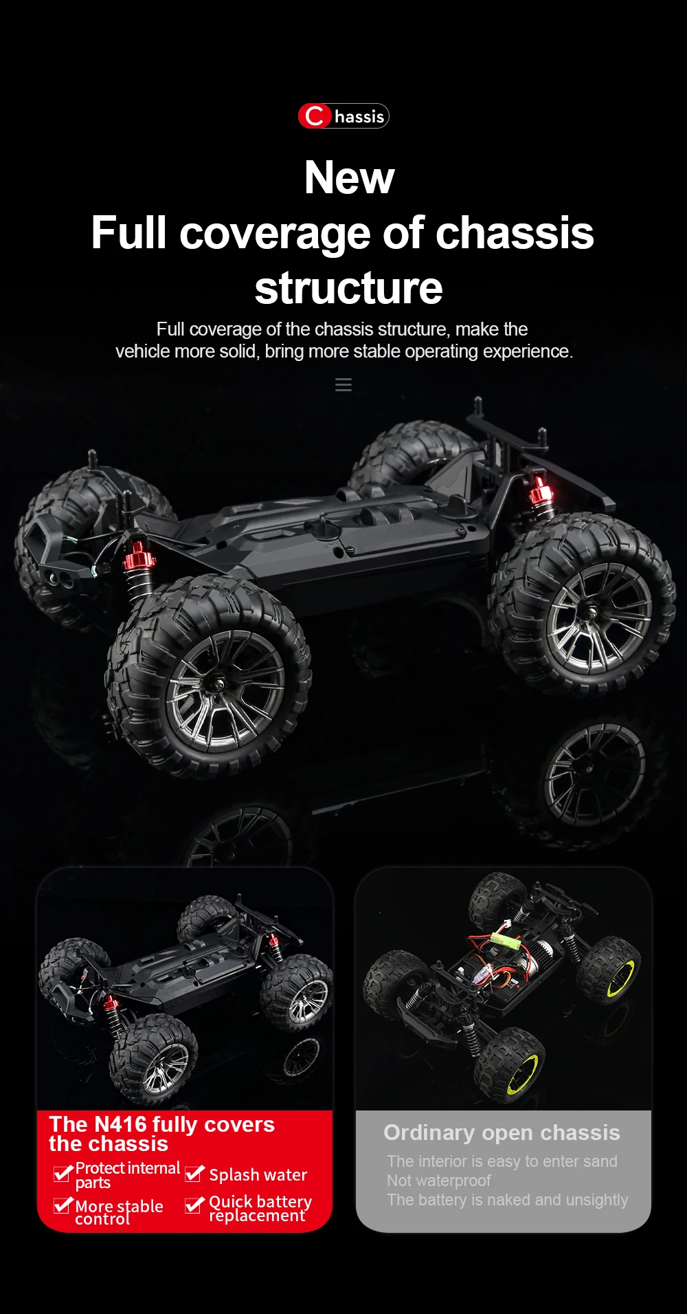 12.Nueva estructura del chasis, cobertura total, más segura y hermosa, resistente al agua.