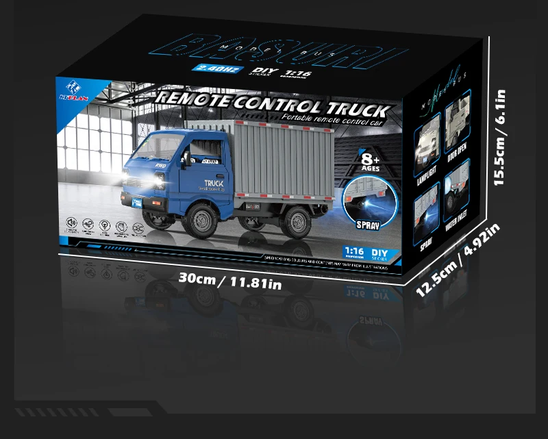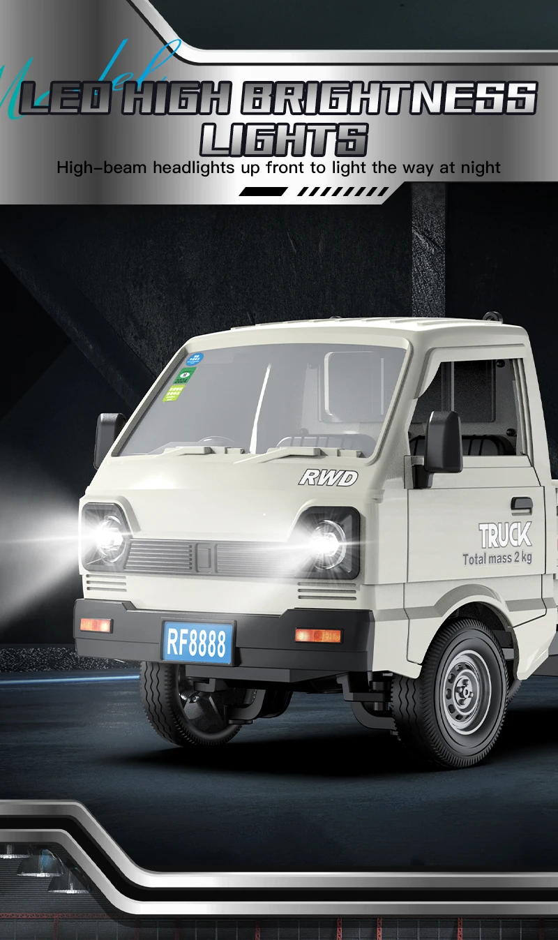 KF21 RC coche transfronterizo 1/16 2,4G con luces de pulverización camión de escalada deriva luz LED carga Control remoto vehículo eléctrico juguetes G