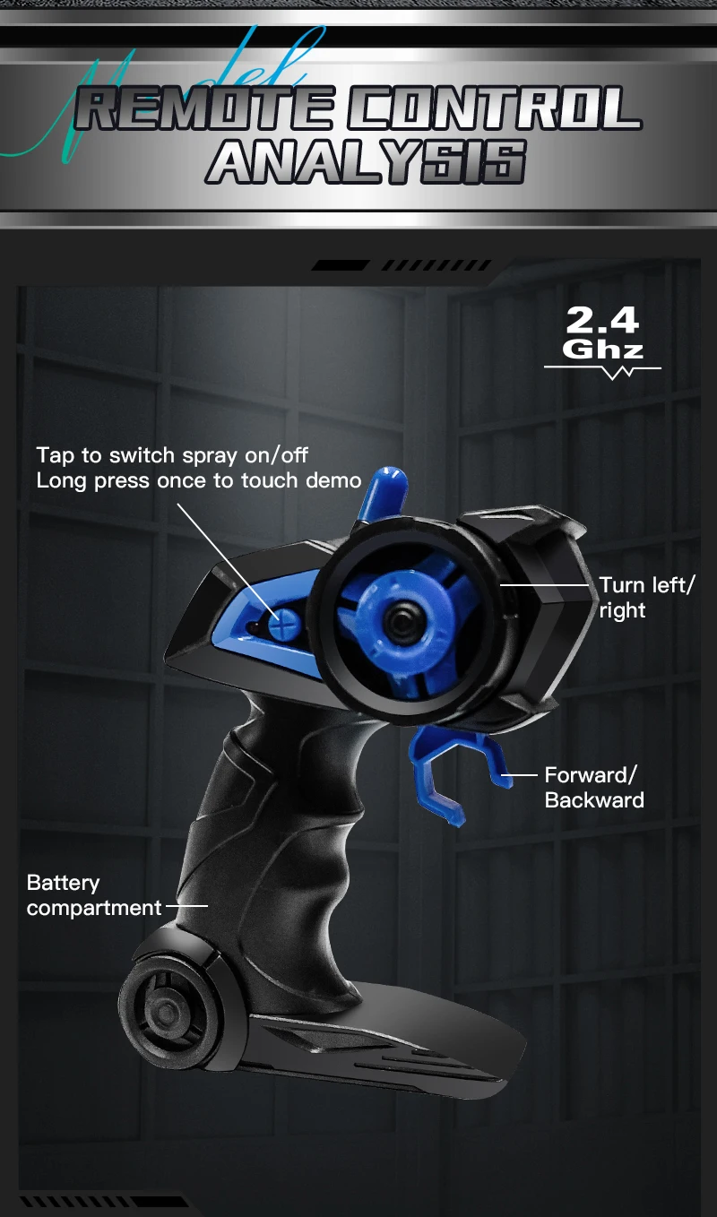 Spray/Música/Luz/Presentación de una tecla/Adelante/Después/Giro a la izquierda