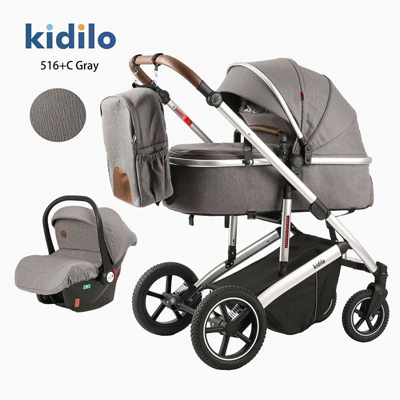 Kidilo ligero puede sentarse cochecito plegable bidireccional paisaje alto amortiguador de cuatro ruedas con cesta 2 en 1 paisaje alto
