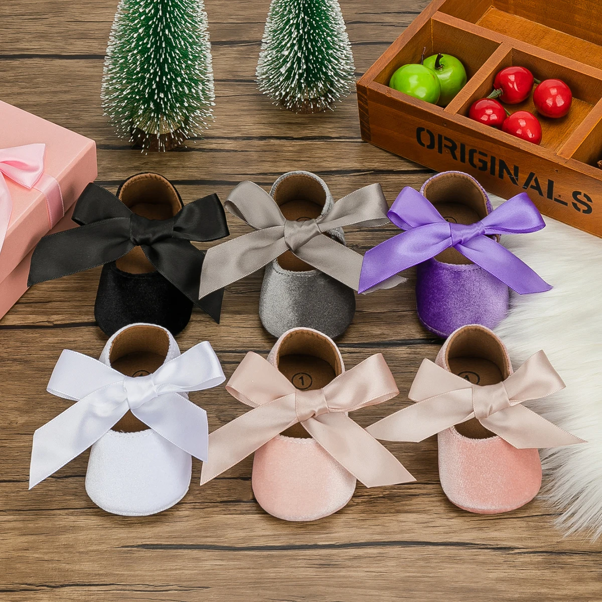 Comprar KIDSUN-zapatos de princesa antideslizantes para bebés y niñas, zapatos planos de goma de algodón con suela suave y lazo para primeros pasos, recién nacidos